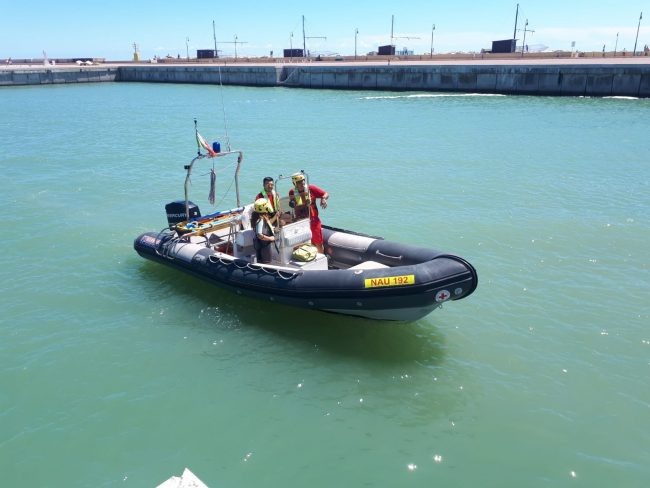 Il gommone di salvamento con il personale sanitario della Croce Rossa di Senigallia