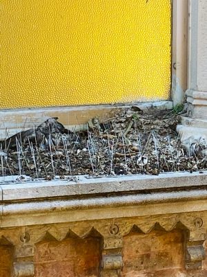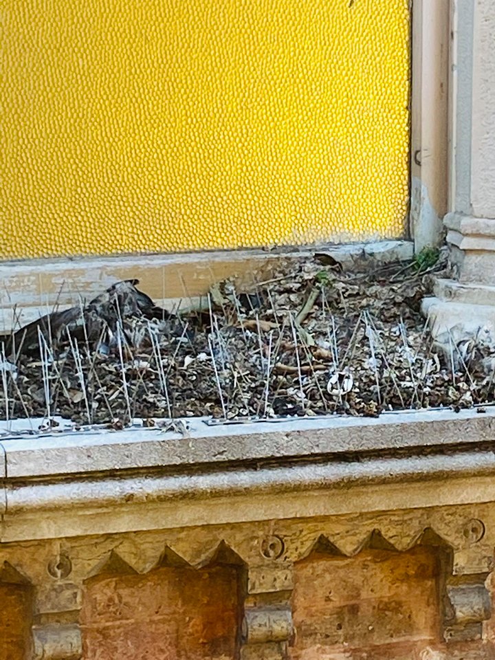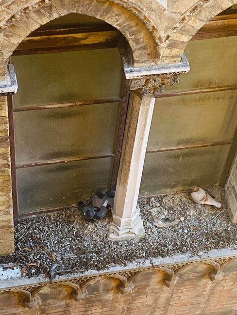 Guano, piccioni, volatili morti, cova, sporcizia e degrado. Il cortile interno di Palazzo Baldeschi, in pieno centro storico, proprio di fronte al Comune, è da anni abbandonato all’incuria e ridotto ad un accumulo di escrementi. Ci sono anche le impalcature lasciate dalla ditta che stava eseguendo i lavori.