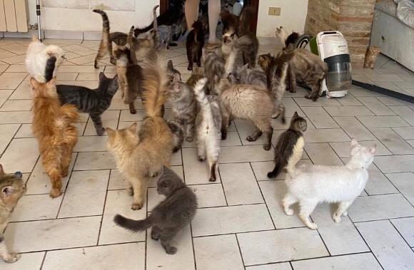 Erano incredule le Guardie zoofile dell’Oipa quando stamattina sono entrate in quella casa nei pressi di Trecastelli con i carabinieri forestali: hanno contato all’incirca settanta gatti malati e un cane detenuti in spazi malsani e maleodoranti.