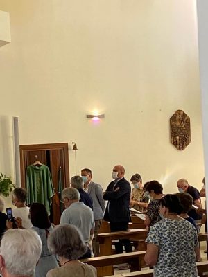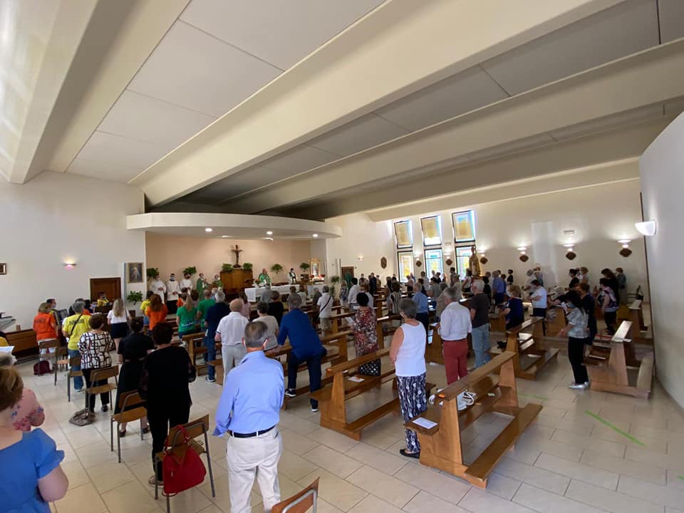 I fedeli accorsi a Messa per salutare don Michele Montebelli