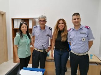 Da sin. l’assessore Michela Glorio, l’ispettore Rolando Montecchiani, l’assessore Federica Gatto e il comandante della Pm di Osimo, Daniele Buscarini
