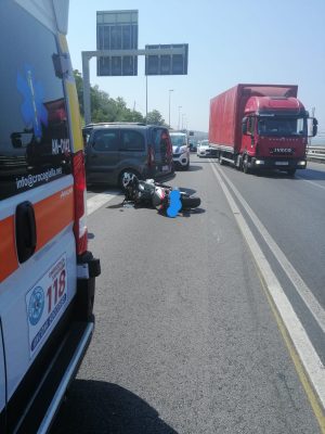 Proprio in quel momento sopraggiungeva un centauro che non ha fatto in tempo a frenare, finendo per schiantarsi contro il mezzo condotto da un cittadino greco. L’impatto, avvenuto intorno alle 15.30, è stato inevitabile. Il motociclista, un 54enne, è stato sbalzato sull’asfalto. Sul posto, chiamato il 118, sono intervenute l’automedica insieme a un’ambulanza della Croce Gialla e alle pattuglie della polizia locale impegnate poi nel dirigere il traffico ed effettuare i rilievi di rito.