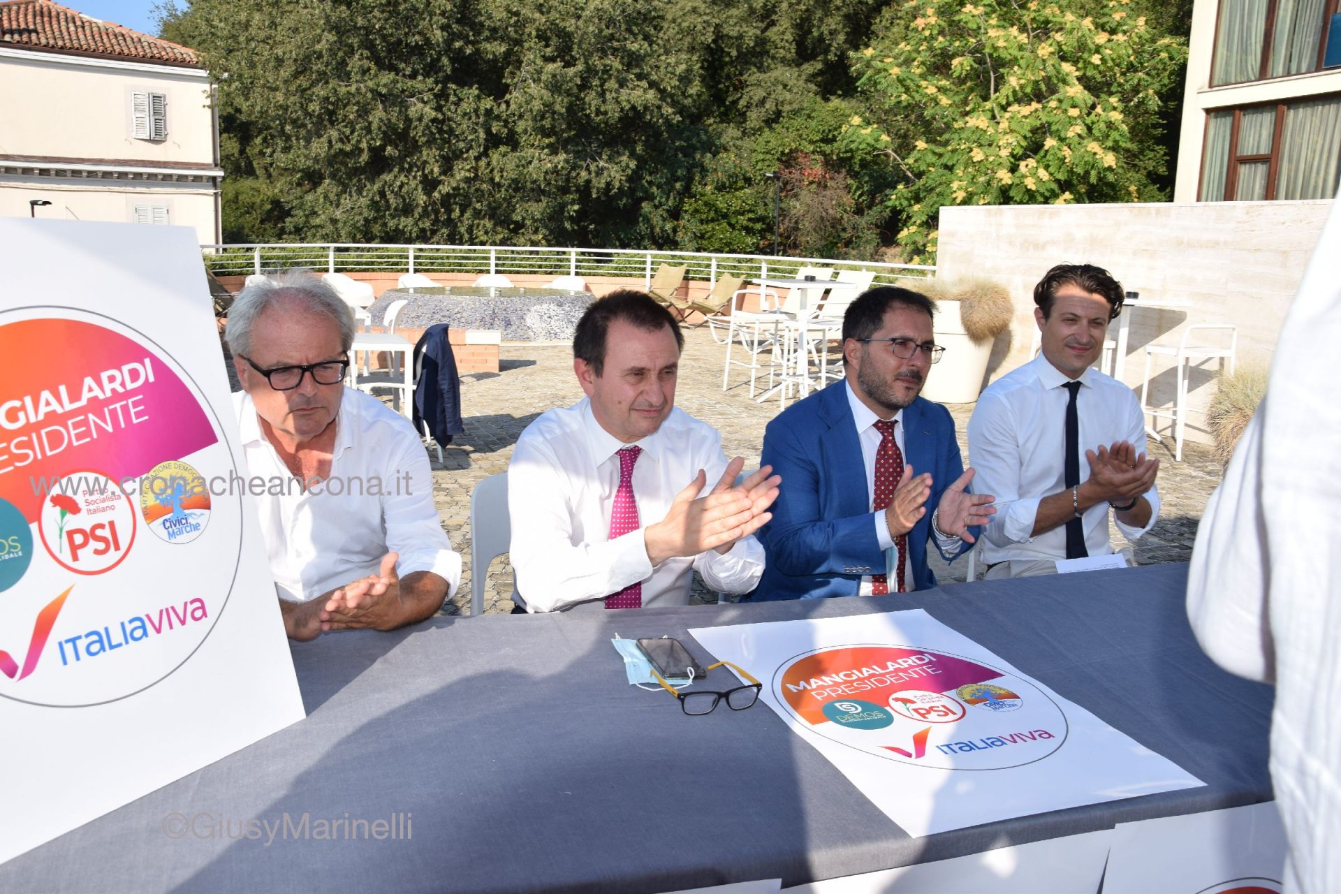 Un polo riformista che schiera Italia Viva, Partito Socialista, Demos e Civici Marche, a sostegno della candidatura di Maurizio Mangialardi alle Regionali di settembre. Non si è dato un nome specifico i neonato gruppo, ma oggi ad Ancona ha presentato il logo: a fare da contenitore c’è il simbolo di Iv, e dentro sono collocati quelli degli altri tre. A tenere a battesimo l’avvio ufficiale di questo percorso, Ettore Rosato, coordinatore nazionale di Italia Viva, e Vincenzo Maraio, segretario nazionale del Partito socialista, oltre ai coordinatori regionali Mattia Magagnini (Demos) e Franco Belletti (Civici Marche), e ad alcuni candidati. La lista con i 30 nomi che correranno per un posto al sole a palazzo Leopardi, verrà presentata entro dieci giorni, ma qualche spoiler è già stato fatto. Dai consiglieri uscenti Fabrizio Urbinati, Federico Talè (Iv) e Boris Rapa (Psi), alle new entry come l’ex rettore di Camerino Flavio Corradini e l’ex sindaco di Recanati Francesco Fiordomo per Iv, il sindaco di Sant’Elpidio a Mare Alessio Terrenzi, in quota Civici Marche, e Antonio Gitto per il Psi. «Nelle Marche sosteniamo la coalizione perché c’è Mangialardi – ha precisato Rosato –, un candidato che ci ha convinto: abbiamo chiuso un accordo con lui, non con altri. Lavoriamo ad un polo riformista che non sia succube dei populismi di destra e di sinistra e siamo contenti di farlo in un rapporto privilegiato con il Psi ed insieme alle esperienze civiche e Demos: il tempo ci dirà se è un esperimento che si conclude qui o che proseguirà». L’intesa tra Psi ed Iv verrà riproposta anche in Veneto e Liguria, altre Regioni al voto a settembre. Cinque anni fa, i Socialisti corsero con i Verdi e la civica di Bianchini nel contenitore Uniti per le Marche, ma questa volta «abbiamo scelto prospettive ed alleati diversi – fa sapere Maraio –: dal piano nazionale, avevamo un’interlocuzione forte con Iv, proprio perché siamo tutti convinti che ci sia la necessità di lanciare un progetto riformista che oggi manca. Riteniamo di essere decisivi per la vittoria di Mangialardi e come valore aggiunto a questa coalizione portiamo un percorso fatto dei buoni risultati raggiunti in questi anni sul Turismo dal nostro assessore Moreno Pieroni». Demos porterà invece tutti nomi civici, molti legati al sociale, e come priorità, spiega Magagnini, pone «una sanità che metta al centro i bisogni della persona, ma anche integrazione ed accoglienza». «Abbiamo fatto un salto in avanti portando il nostro simbolo, nato dieci anni fa a Sant’Elpidio a Mare, anche in Regione», osserva infine Belletti.