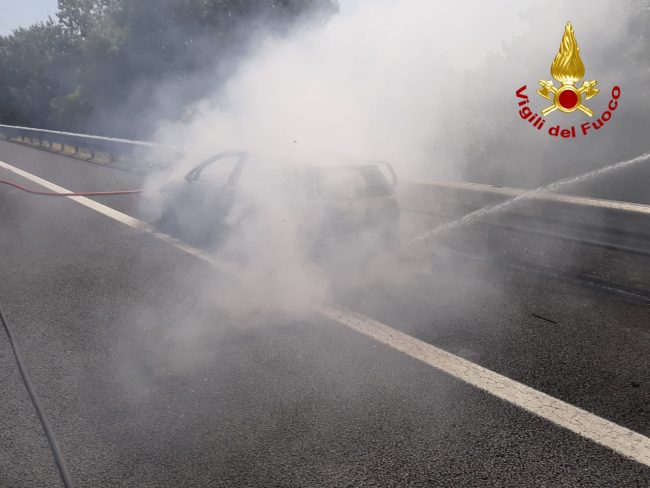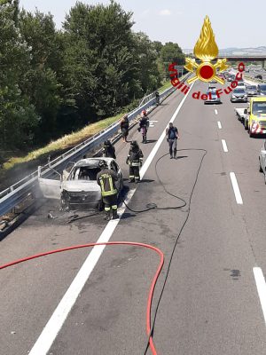 Auto in fiamme sull’A14,