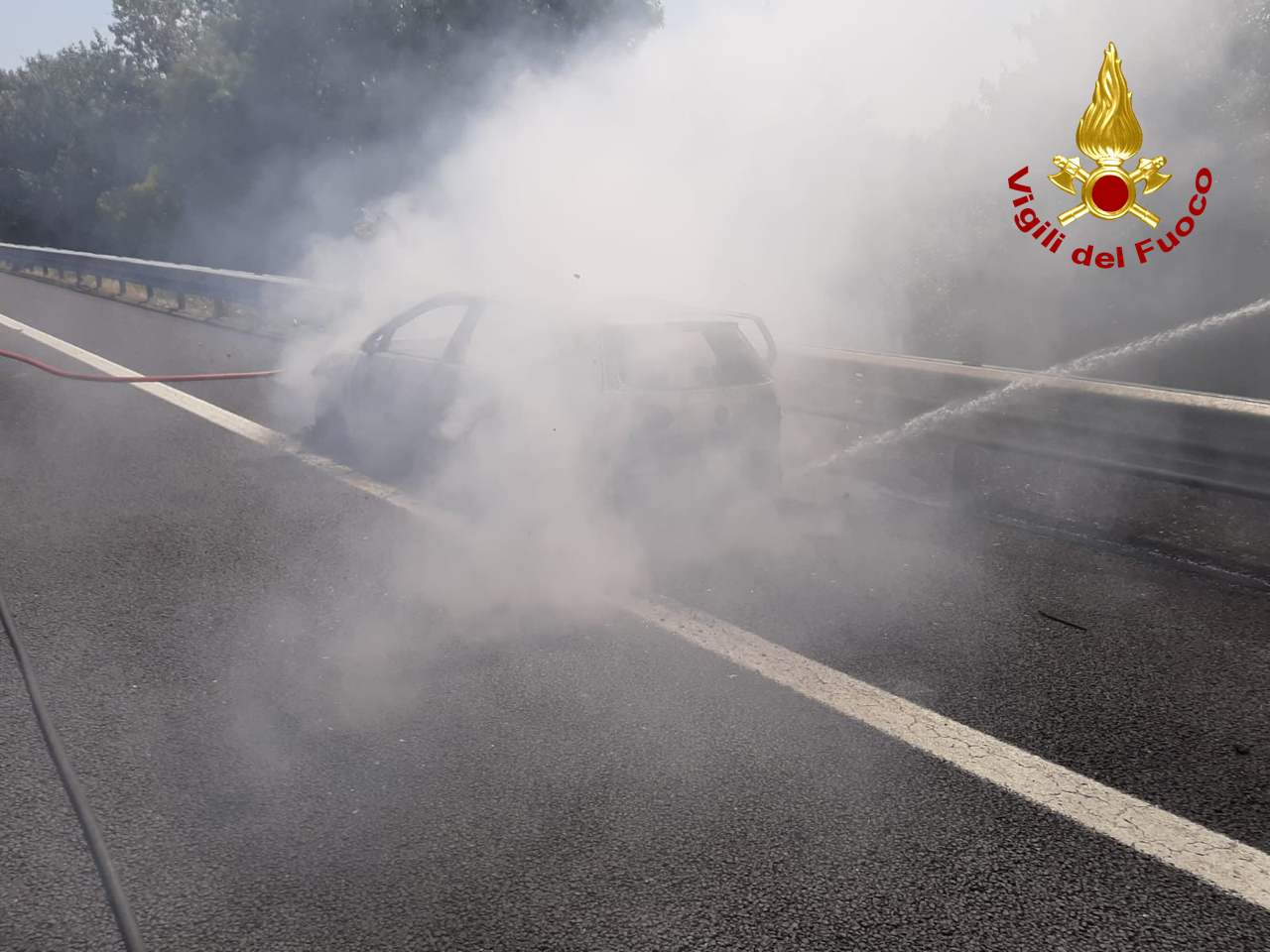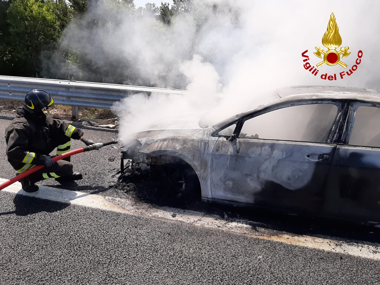 Auto avvolta dalla fiamme in autostrada forse per le temperature torride di queste ore. I vigili del fuoco sono intervenuti sull’A 14 intorno alle 12.05 di oggi per domare l’incendio scatuturito dal vano motore di una Golf Volkswagen di colore nero. L’auto era in transito sulla corsia sud tra i caselli di Ancoina Sud-Osimo e Loreto PortoRecanati, quando il conducente ha notato le fiamme fuoriuscire  dal cofano. E’ riuscito a mettersi in salvo con gli alttri passeggeri fermando il mezzo a al margine della autostrada, all’altezza dell’area industriale di Castelfidardo dove si trova lo stabilimento Tontarelli.  Poi hanno lanciato l’allarme. La squadra  dei pompieri di Ancona intervenuta con un’autobotte ha spento il rogo che ha avvolto completamente l’autovettura coinvolgendo successivamente la sterpaglia adiacente all’autostrada.