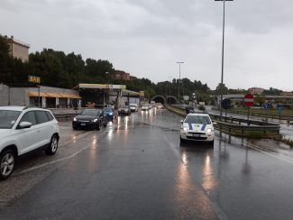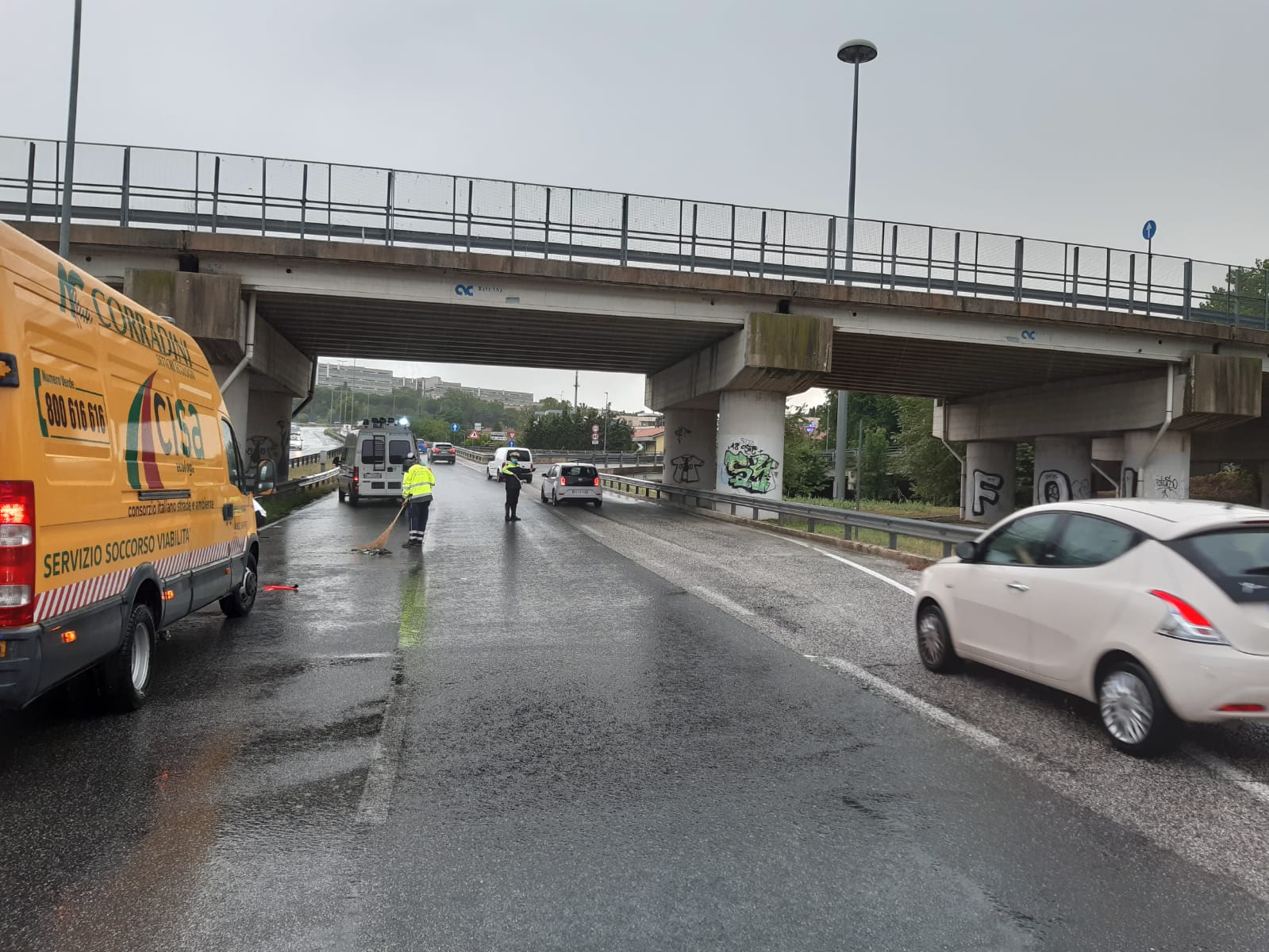 L’intervento della polizia locale dopo l’incidente avvenuto sull’asse a causa della pioggia