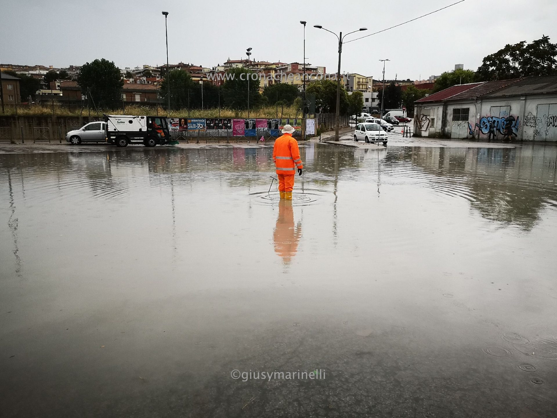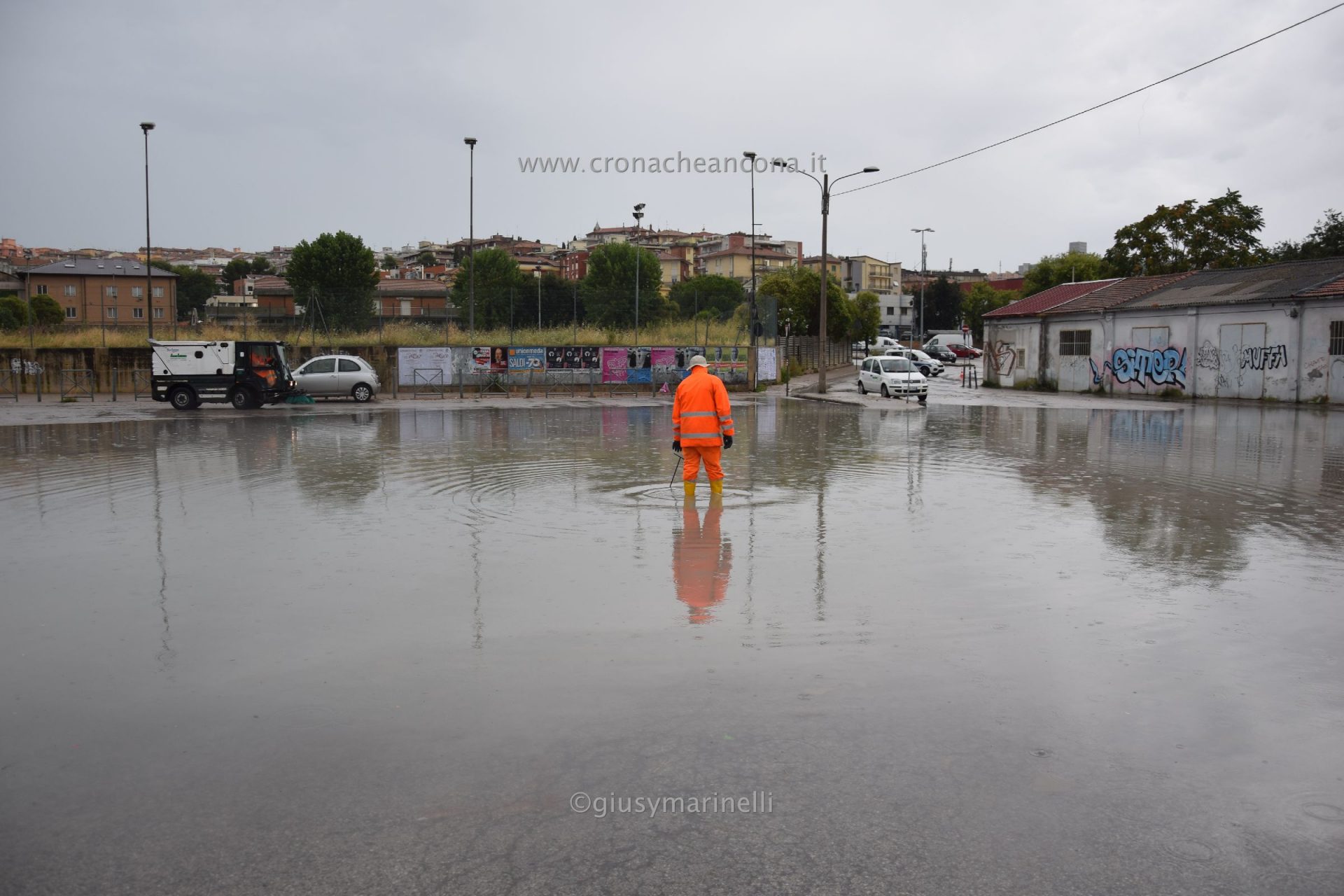 Il nubifragio abbattutosi sulla città ha causato danni anche questa volta più che altro dovuti però ad allagamenti vari. Il Piano è stato il quartiere più colpito dove, in piazza D’Armi, l’acqua ha creato il solito ‘lago’ al punto che la strada perimetrale che dà in via Cristoforo Colombo, è stata chiusa alla circolazione da parte della polizia locale giunta sul luogo per il tempo necessario agli operatori del Comune e di Anconambiente di farla defluire nel condotto fognario.