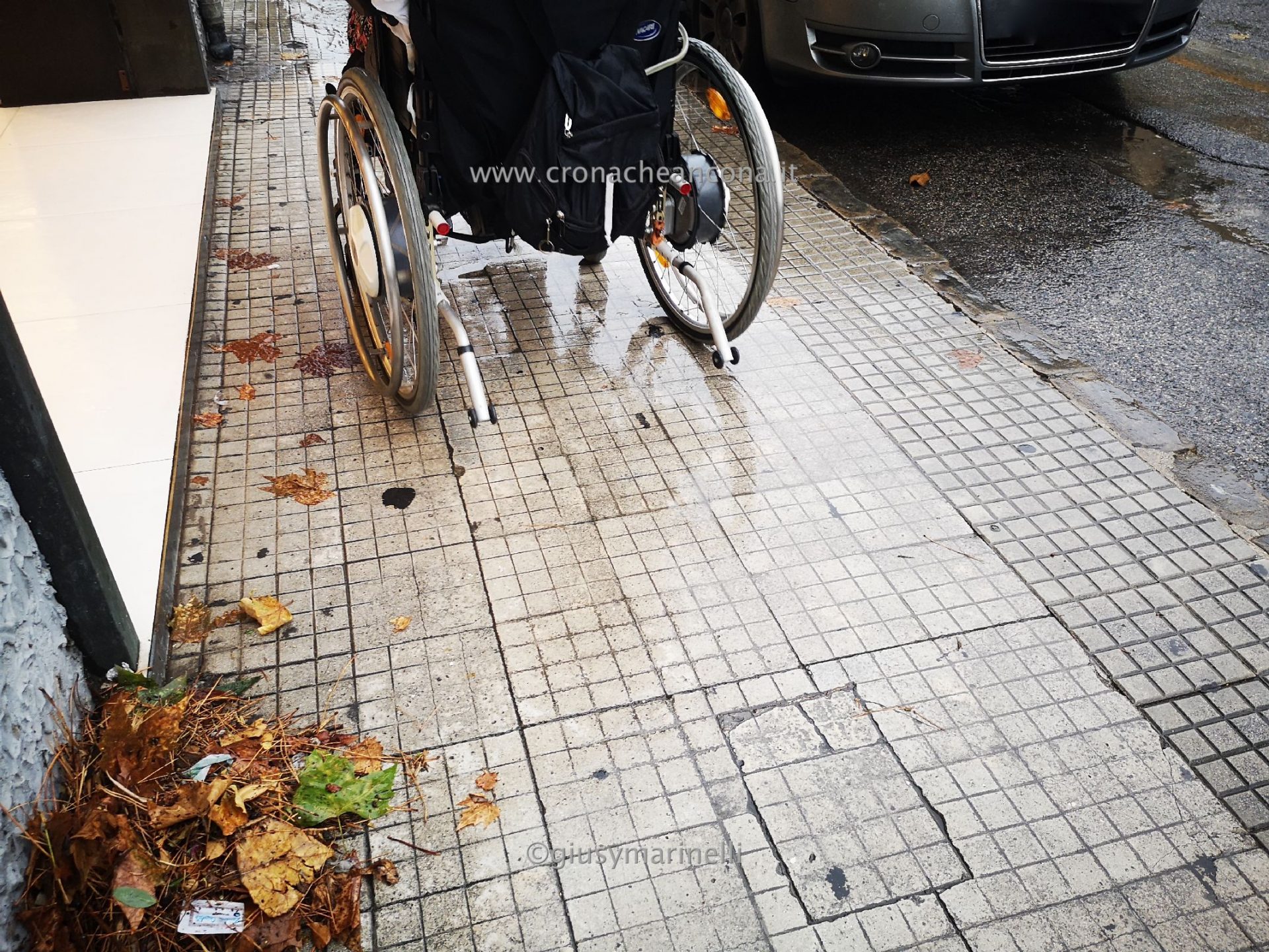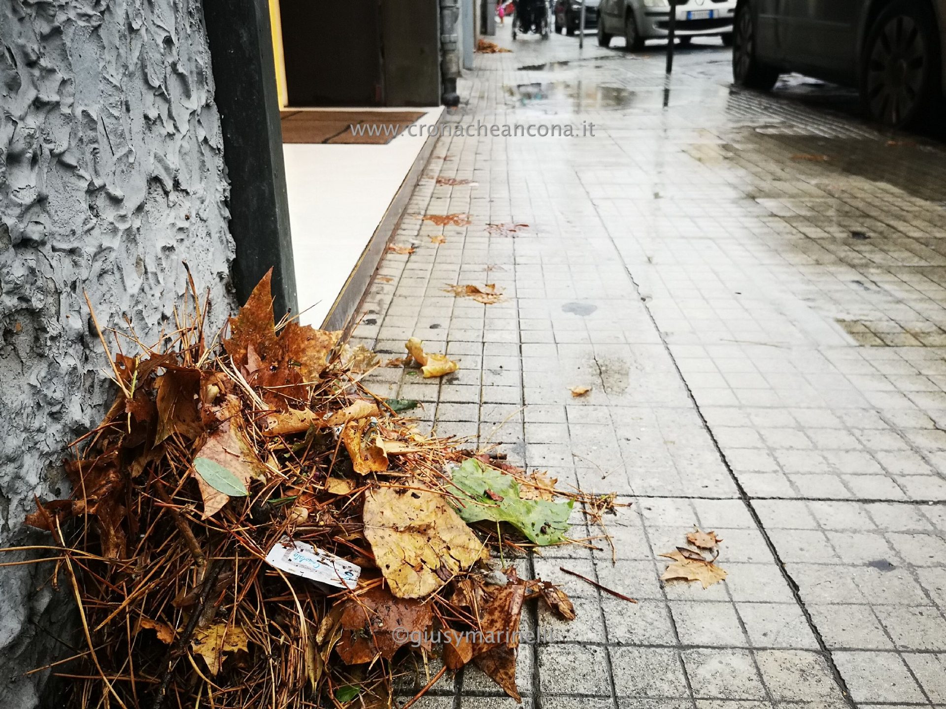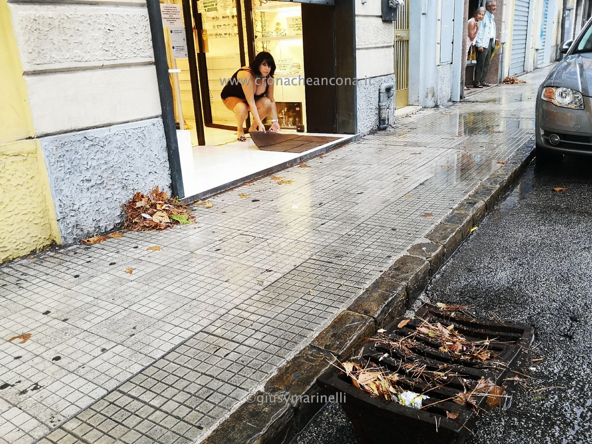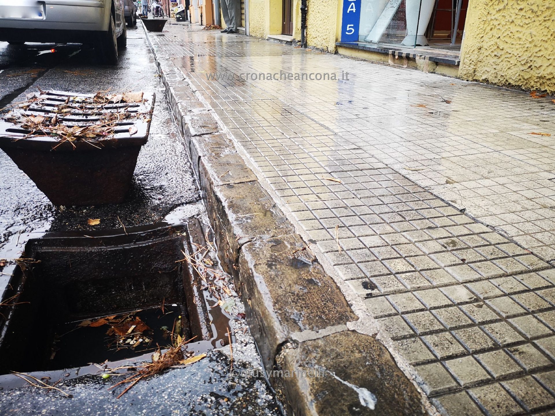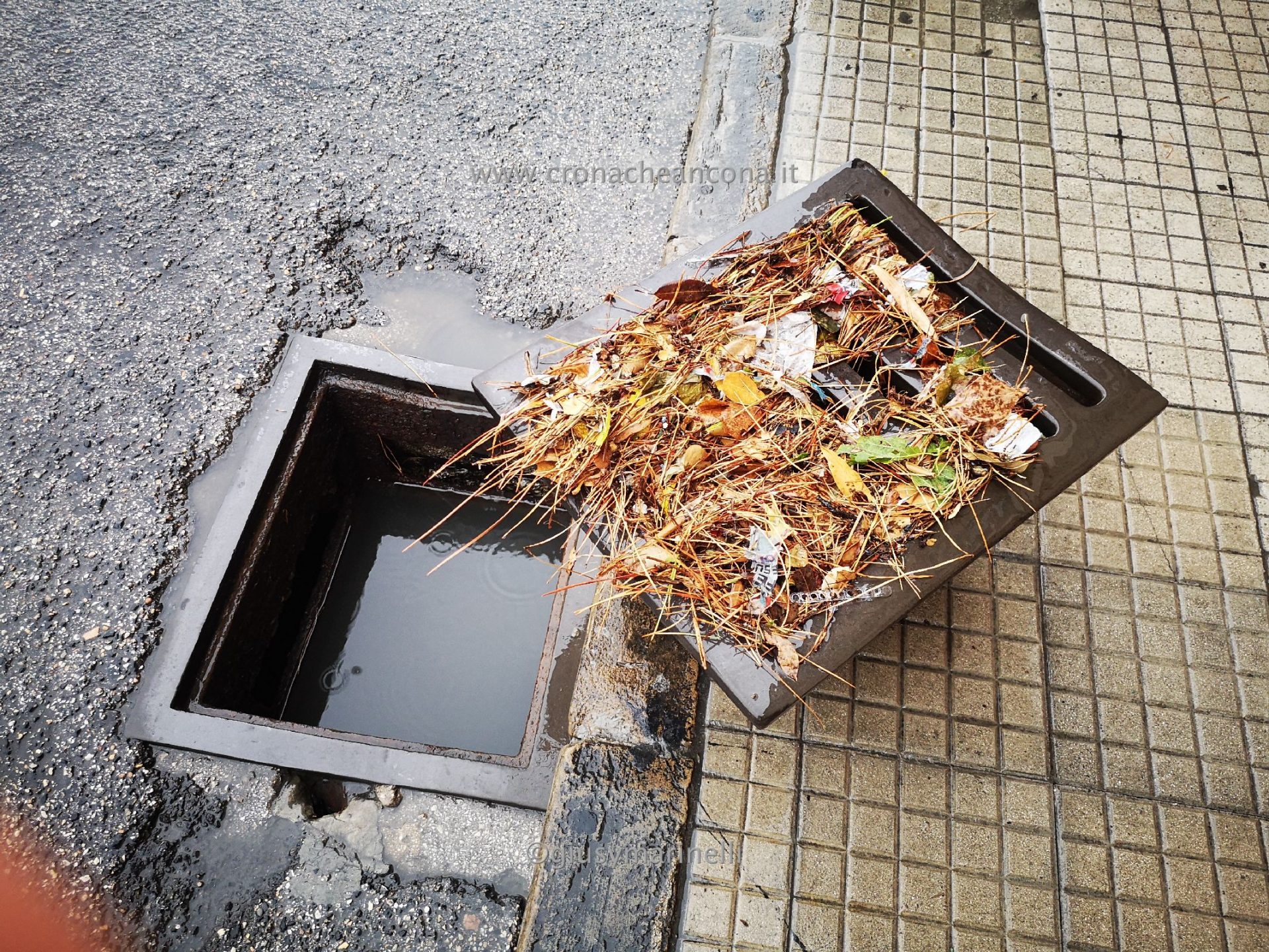 I tombini, ricoperti da fogliame, sono stati aperti in modo tale da permettere lo scorrere della massa d’acqua che scendeva dai vicini quartieri più in alto.