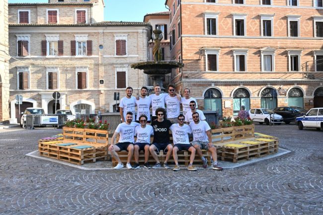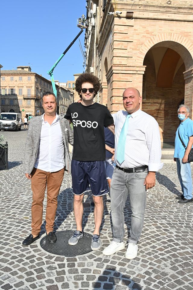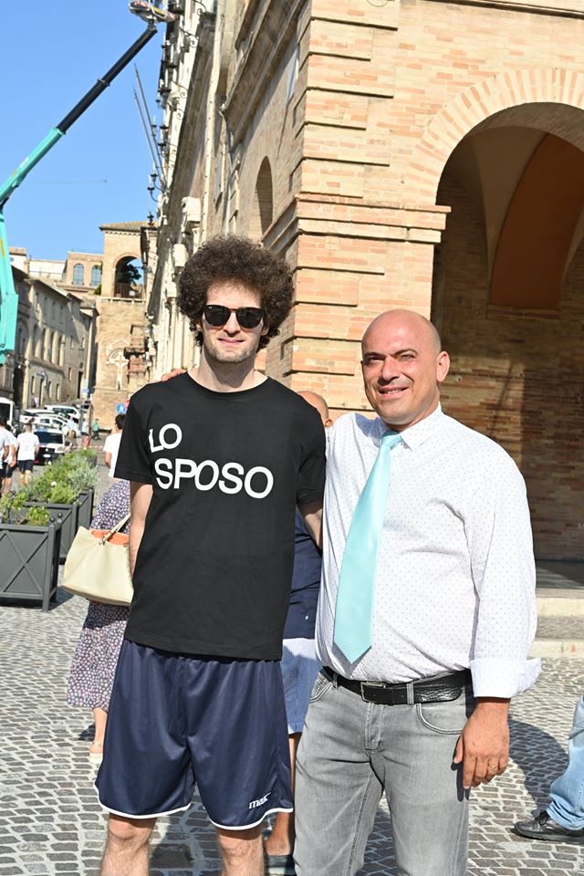La cerimonia di nozze si svolgerà nella città di Federico II. Stamattina in piazza Boccolino il futuro sposo è stato immortalato con i suoi amici che l’hanno  ‘sequestrato’ per renderlo protagonista della festa di addio al celibato, organizzata a sorpresa  nella movida di Riccione. Prima della partenza Filippo ha ricevuto le congratulazioni per il lieto evento e gli abbracci del presidente del Consiglio Giorgio Campanari, del sindaco Simone Pugnaloni e dell’assessore Mauro Pellegrini.