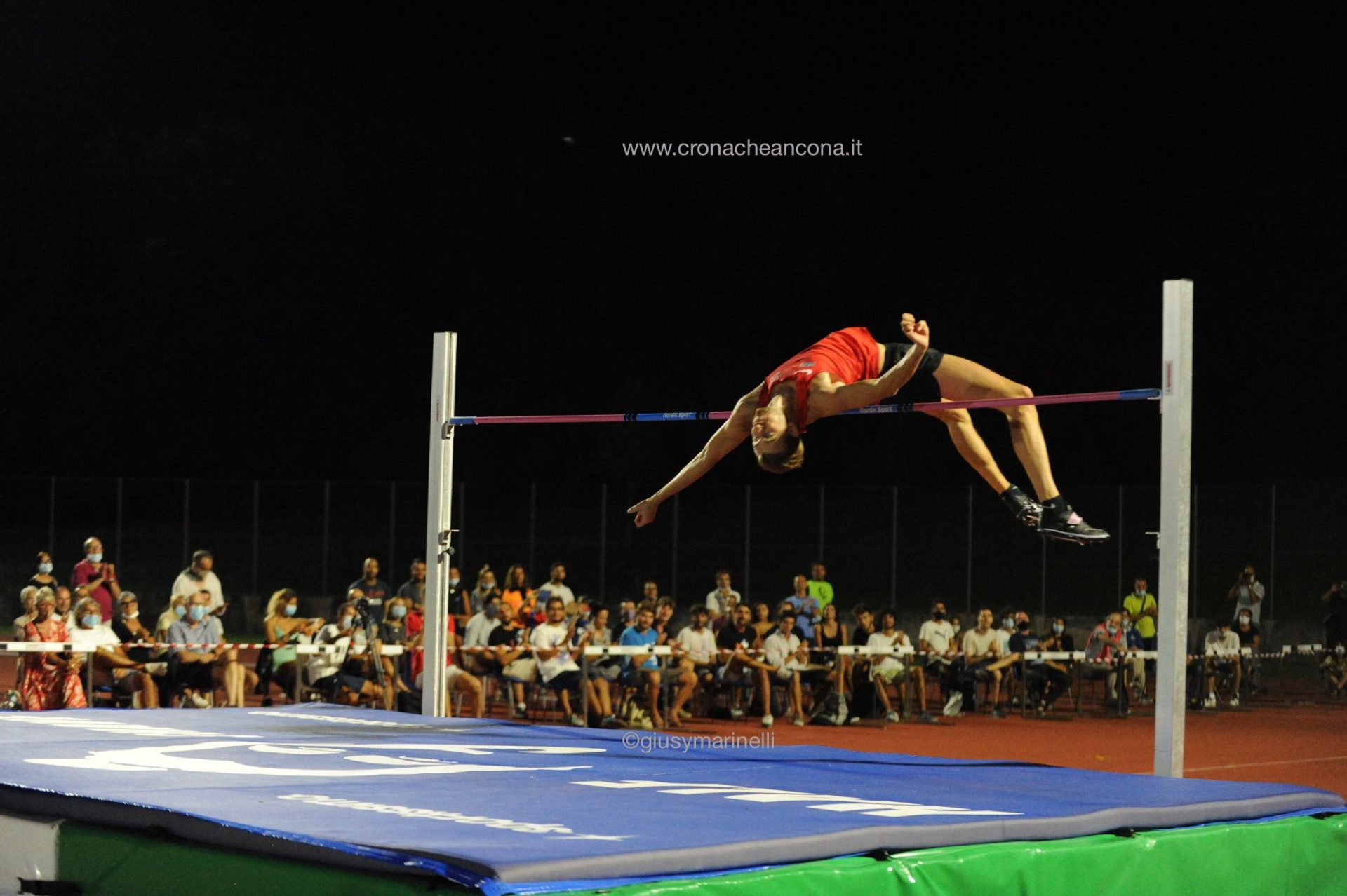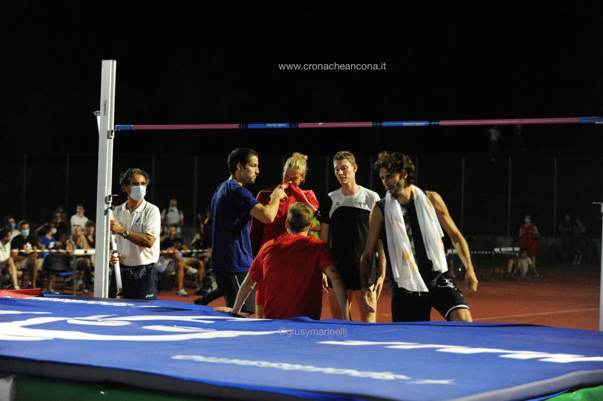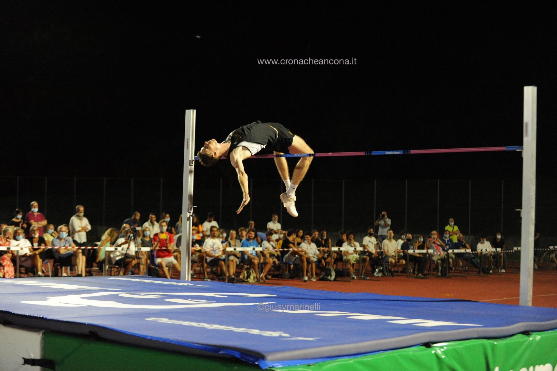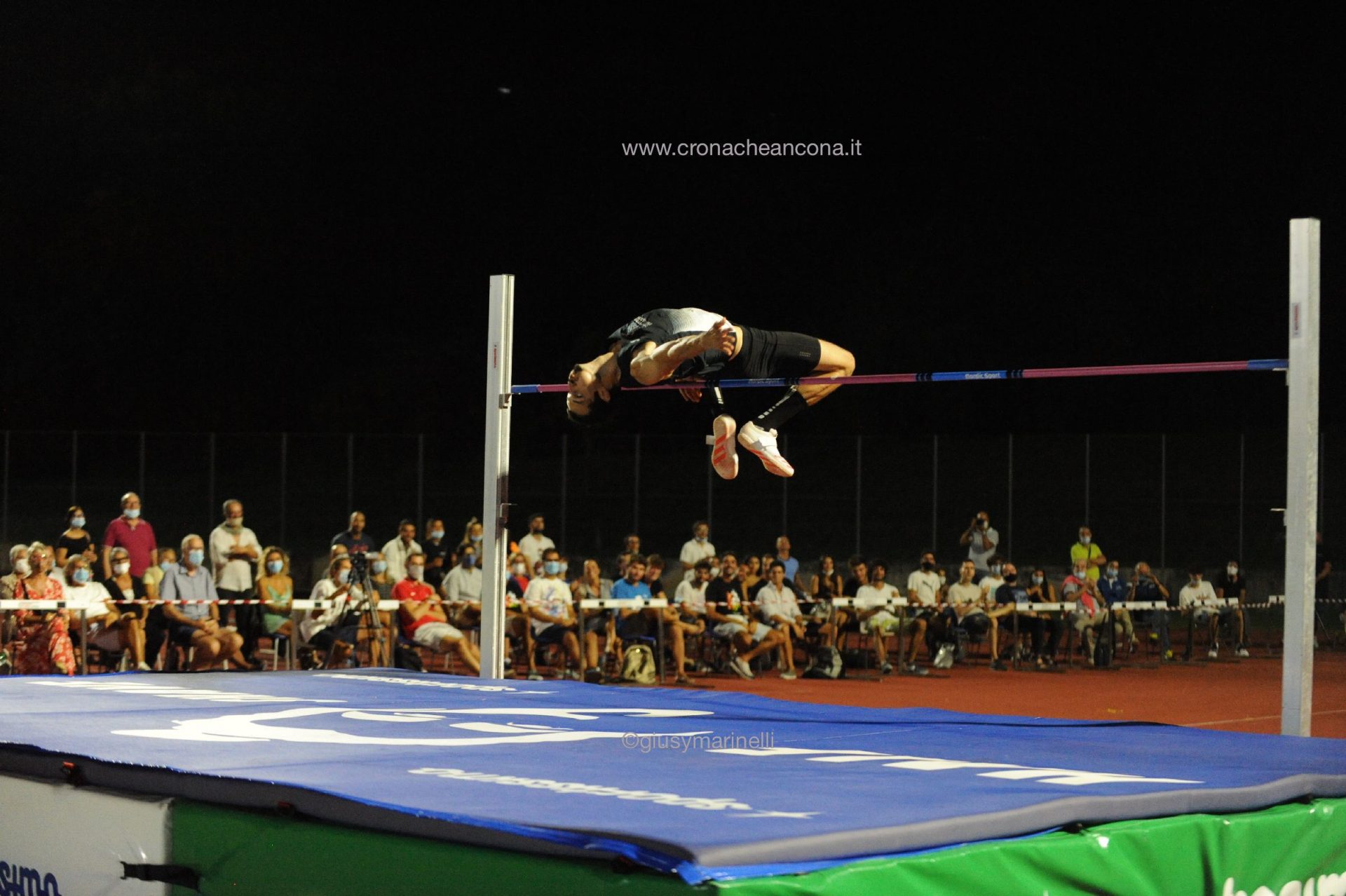 Complice anche una serata non esaltante dei compagni d’avventura scelti per l’evento organizzato in casa, tutti fermi a 2,20, l’azzurro dell’Atletica Vomano non trova gli stimoli per volare verso i due e trenta che aveva già raggiunto nello stesso impianto alla fine di giugno. Il pubblico distanziato a bordo pedana, il dj a rendere frizzante l’atmosfera nella piacevole serata marchigiana di ieri. Gimbo non ha problemi a 2,15, quasi una formalità, sbrigata indossando ancora gli amati pantaloncini da basket. A 2,20 incorre in un primo errore, poi sistema la rincorsa e vola alto sull’asticella al secondo tentativo, mentre il tedesco campione europeo Mateusz Przybylko rischia grosso alla stessa quota e passa soltanto al terzo colpo.