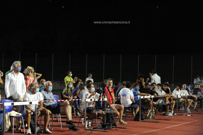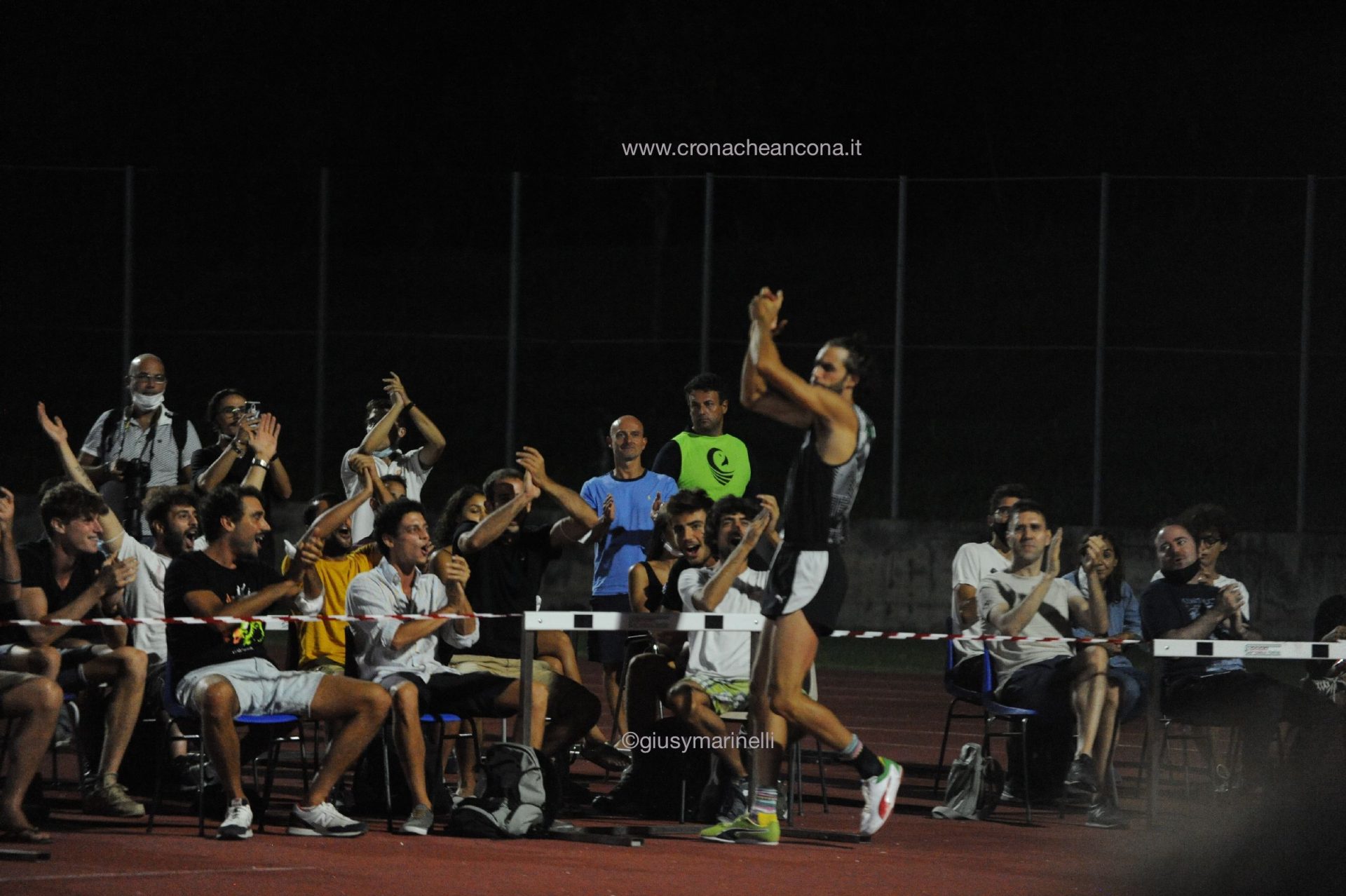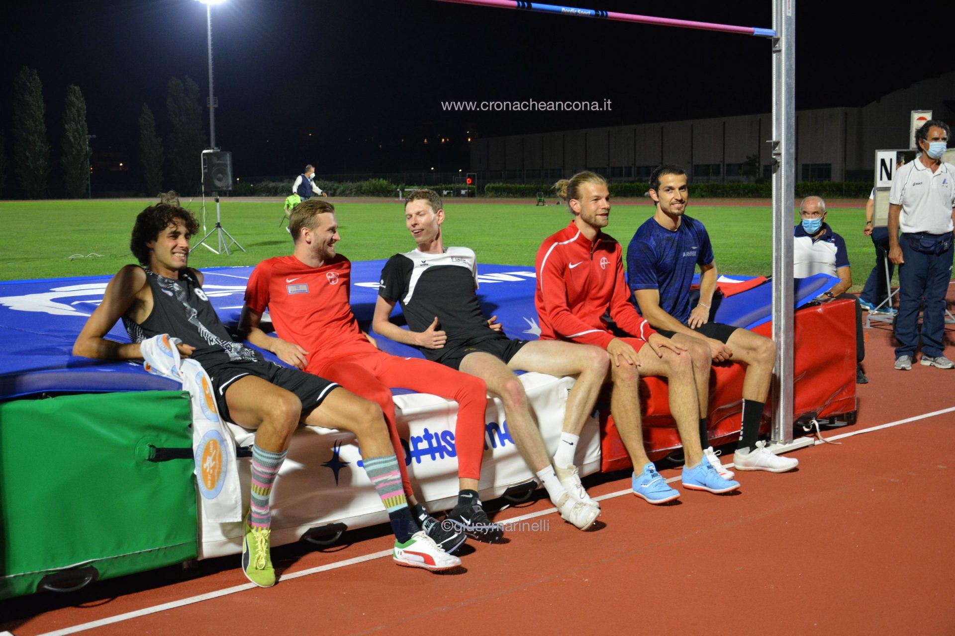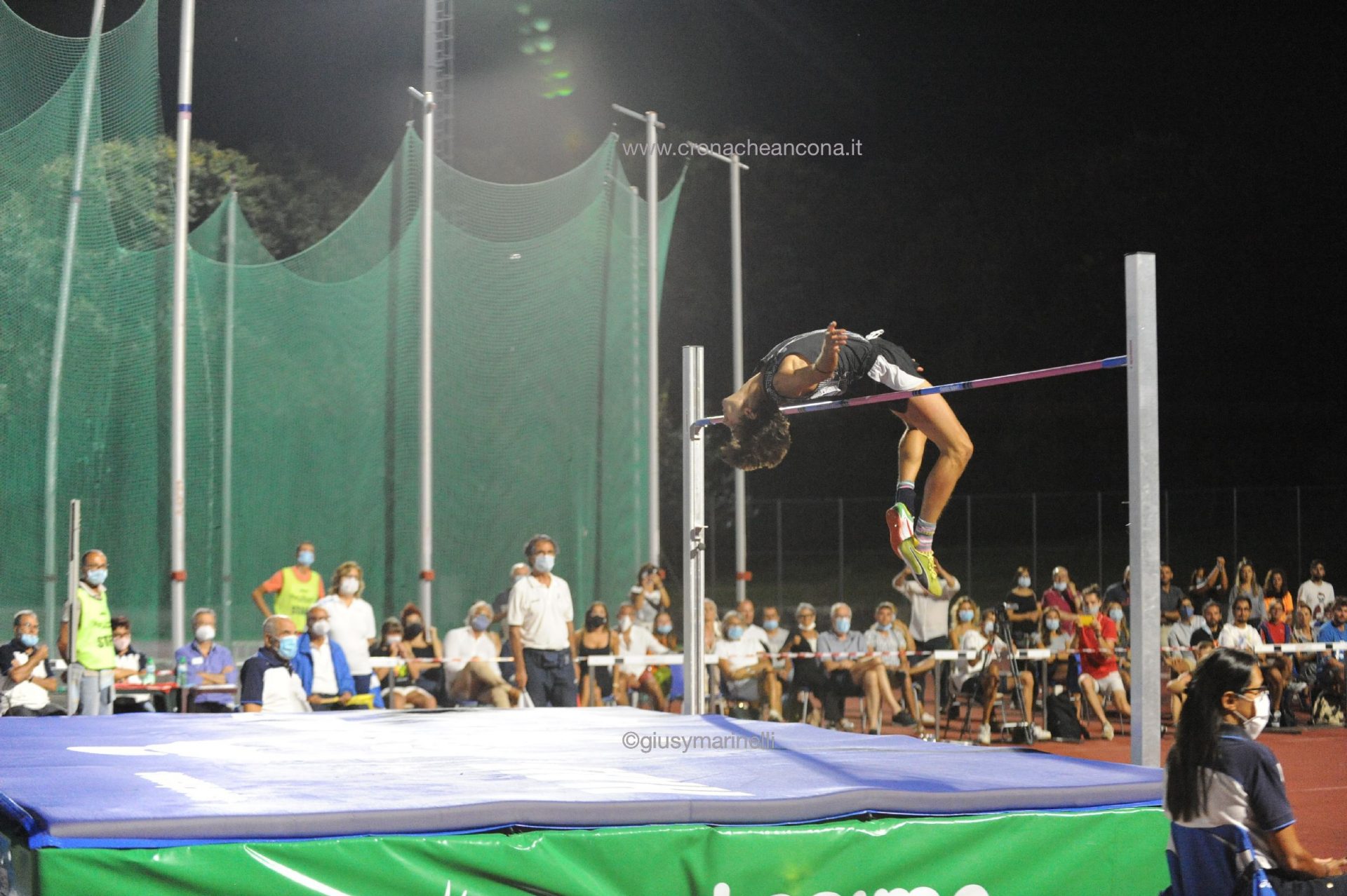 Complice anche una serata non esaltante dei compagni d’avventura scelti per l’evento organizzato in casa, tutti fermi a 2,20, l’azzurro dell’Atletica Vomano non trova gli stimoli per volare verso i due e trenta che aveva già raggiunto nello stesso impianto alla fine di giugno. Il pubblico distanziato a bordo pedana, il dj a rendere frizzante l’atmosfera nella piacevole serata marchigiana di ieri. Gimbo non ha problemi a 2,15, quasi una formalità, sbrigata indossando ancora gli amati pantaloncini da basket. A 2,20 incorre in un primo errore, poi sistema la rincorsa e vola alto sull’asticella al secondo tentativo, mentre il tedesco campione europeo Mateusz Przybylko rischia grosso alla stessa quota e passa soltanto al terzo colpo.