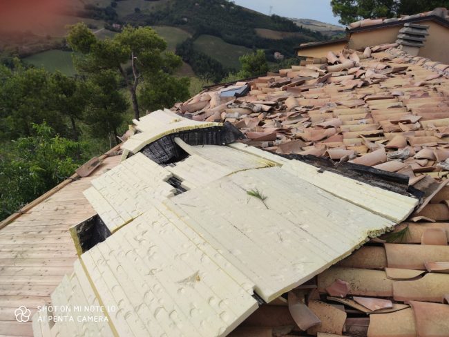 «Sono stati attimi di vera paura, ma possiamo anche dire che per fortuna quei momenti li possiamo anche raccontare». Quanto accaduto durante la grandinata di domenica ad Alessandro Nicoletti, titolare di Ankongrafica, nella sua abitazione a Gallignano ha dello spaventoso perché «ci è volato via il tetto di casa e non solo». La scena che ha vissuto insieme alla famiglia, composta anche da un bimbo e una bimba piccoli, «mi ha ricordato quei documentari sulle trombe d’aria che si vedono in televisione. Erano le 15 – ricorda – quando abbiamo sentito una serie di tuoni continui poi, è arrivato un vento fortissimo che ha portato via gli sportelloni di una finestra, staccando anche i cardini con tutto il cemento. A quel punto – prosegue – mi sono incollato alla finestra della camera nonostante questa fosse chiusa con la maniglia e tentasse ugualmente di spalancarsi. Mi ci sono messo di peso per non farla sfondare e aprire. I vigili del fuoco, quando sono intervenuti, mi hanno detto che se si fosse spaccata avrebbe creato una corrente interna che avrebbe scoperchiato tutto l’edificio». La casa ha subito danni «per diverse decine di migliaia di euro. La furia della tempesta è riuscita a portare via la copertura con i coppi. La nostra – ricorda – è una casa ristrutturata nel 2003 ma ha dei vincoli di facciata poiché è del 1300 quindi è costituita da una copertura di travi in legno, tavolato e coppi e il vento ha portato man mano via tutto. A quel punto ho fatto uscire mia moglie dalla stanza facendole chiudere la porta». In quei 5 minuti interminabili «ho visto volare via un lucernaio da 45 chili, in verticale. La tempesta lo ha aspirato. L’ho visto volare via sopra la mia testa. Ho preso un po’ di grandinate e coppi che mi sono venuti addosso ma è andata bene così. Il vento è stato in grado anche di sollevare di qualche centimetro il tetto in altri punti, tanto che è entrata altra grandine». La furia «ha distrutto tutto, anche il camper al quale ha portato via la vernice di una fiancata, come fosse stato sabbiato. Ha piegato pure un palo di recinzione in acciaio mentre la parabola in acciaio ha un buco, come di proiettile». In questi giorni senza tetto «dormiamo, si fa per dire, con dei teli di copertura che di tanto in tanto aggiustiamo per il vento. I bimbi – commenta – ovviamente hanno paura e non vogliono stare in camera». La preoccupazione è stata anche per l’attività in via Nenni «ma lì – dice – per fortuna è tutto a posto. Devo dire poi che oltre alla gentilezza e disponibilità dei vigili del fuoco, tantissimi sono stati i clienti che mi hanno chiamato perché volevano darmi una mano e correre a Gallignano per aiutarmi fin da subito. Una cosa che ho molto apprezzato».