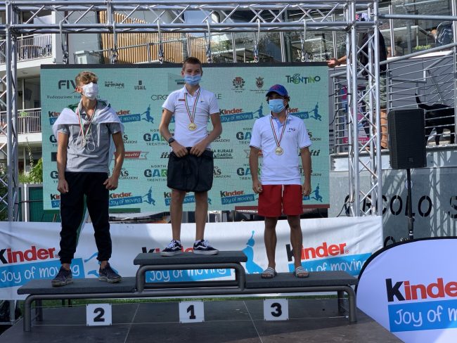 Un grande cuore marchigiano ha riempito di passione il Lago di Garda, dove si sono svolti i due Campionati Italiani Giovanili Singoli FIV, supportati da Kinder Joy of Moving: quello della classe Optimist (149 concorrenti) a Malcesine e quello del Windsurf Techno 293 (140 concorrenti) a Torbole, in assoluto una delle edizioni più affollate. Oro U15 e argento U17 per gli anconetani Giulio Orlandi e Alessandro Graciotti. L’ultima giornata si è rivelata complicatissima dal punto di vista meteo: pioggia battente al primo mattino, poi sole, vento da nord leggero, vento da sud salito sufficientemente per tentare qualche partenza verso le 12, ancora sole e infine solamente a Torbole, sul Garda Trentino, per i Techno 293 ospiti al Circolo Surf Torbole e per le categorie U17 e U19 si è riusciti a portare a termine una sola prova, portando così a sei le regate delle tavole. In quel del Circolo Surf Torbole, a sorridere sono proprio i giovani surfisti nostrani. Negli U15, è Giulio Orlandi della SEF Stamura a prendersi la scena, conquistando il primato senza troppe difficoltà e dimostrando grande tenacia e un talento cristallino. Condividono il podio con lui Tiberio Riccini (CS Bracciano Asd) e Andrea Letterio Mirea (Lega navale Civitavecchia) rispettivamente al secondo e terzo posto. Così gli altri stamurini in gara: 15. Andrea Pacinotti, 17. Enea Giacomini, 32. Leonardo Regoli. Fra gli U17, è un altro campione della vela nostrana a salire sul podio: Alessandro Graciotti (SEF Stamura) è medaglia d’argento dopo un testa a testa continuo con il vincitore, Federico Alan Pilloni (CV Windsurf Club Cagliari Asd). Al terzo posto troviamo Alessandro Melis del medesimo club sardo.