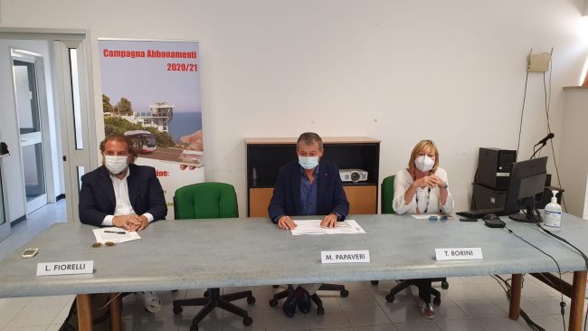 Più mezzi e almeno venti steward da impiegare sui bus più affollati. Sono i punti cardine su cui si fonda la campagna abbonamenti 2020-2021 di Atma in vista dell’avvio dell’anno scolastico. Prezzi invariati, agevolazioni per chi compra l’abbonamento sul web e possibilità di utilizzare il voucher per il rimborso delle tessere inutilizzate durante il lockdown per coprire i costi delle nuove card. Il punto è stato fatto questa mattina ad Ancona dal presidente di Atma/Conerobus Muzio Papaveri, nel corso di una conferenza stampa, alla quale sono intervenuti il vicepresidente di Atma Lorenzo Fiorelli, l’assessore alla Pubblica Istruzione del Comune di Ancona Tiziana Borini e il referente dell’Ufficio scolastico regionale Massimo Iavarone. «Siamo pronti per partire in sicurezza sin dal 14 settembre – ha spiegato Papaveri – quando si tornerà in aula. Il piano prevede anzitutto l’aumento dei mezzi, che andranno a potenziare almeno venti corse sia lungo le tratte urbane che extraurbane. L’ipotesi è quella di utilizzare più bus in contemporanea, così da consentire il rispetto dell’indice di riempimento. Nei mesi di settembre e ottobre, poi, abbiamo previsto alle fermate e sugli autobus più affollati dagli studenti l’impiego di steward, che, negli orari di entrata ed uscita, si occuperanno di distribuire i ragazzi tra i mezzi e di sensibilizzarli sul corretto uso della mascherina. Nessuno verrà lasciato a piedi». La decisione di incrementare le corse è stata una scelta obbligata dettata dal fatto che la capienza massima dei mezzi è stata fissata all’80%.