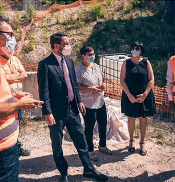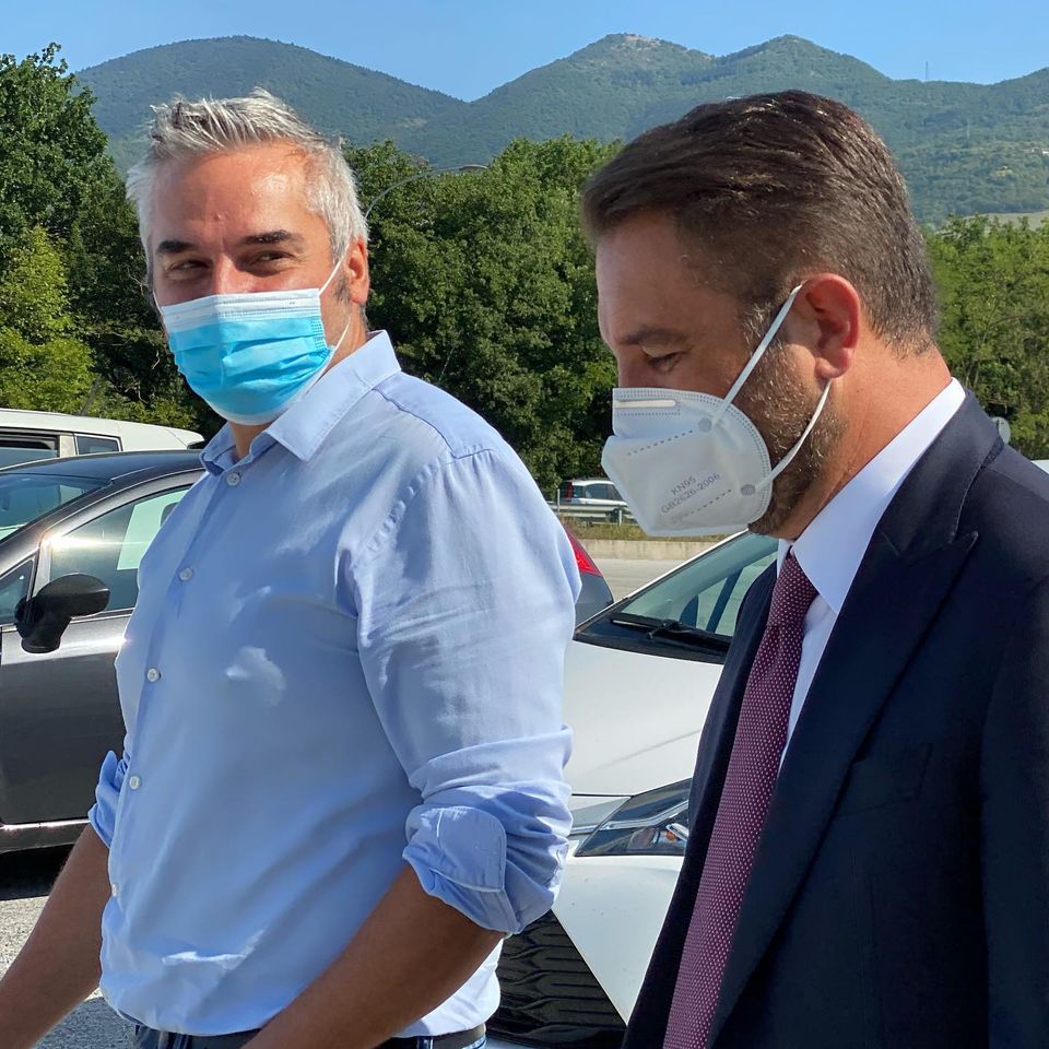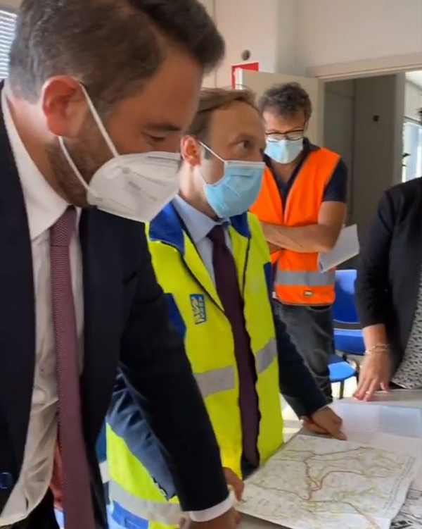 Da sin. il sindaco Gabriele Santarelli con il viceministro Cancelleri durante il sopralluogo nel cantiere di Fabriano