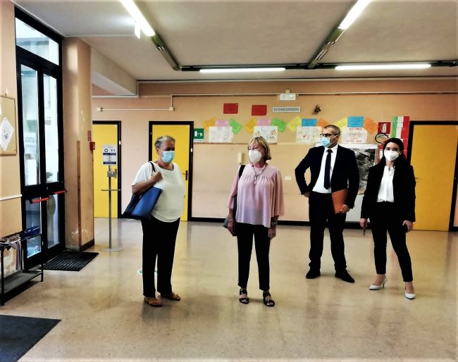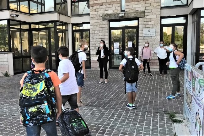 Il sindaco Valeria Mancinelli, insieme all’assessore alle Politiche Educative Tiziana Borini, ha scelto, per gli auguri di inizio anno, la scuola primaria Falcone dell’istituto comprensivo Quartieri Nuovi che quest’anno ospita anche tre classi della scuola secondaria di primo grado Pinocchio, dell’istituto comprensivo Pinocchio-Montesicuro. Presenti i dirigenti scolastici dei due istituti, Giuseppe Minervini e Michela Vincitorio che, in un clima di grande collaborazione, hanno organizzato gli ingressi degli alunni sfalsando gli orari di pochi minuti, garantendo così il distanziamento ed evitando di far incontrare i più piccoli delle elementari con i più grandi delle medie (ai quali è stato riservato un intero piano). «Come tutti gli anni, anche in questa situazione eccezionale, abbiamo voluto portare un saluto simbolico a bambini, ragazzi, insegnanti e operatori scolastici nel primo giorno di riapertura delle scuole – afferma l’assessore Borini – . Tutto si e’ svolto nel rispetto delle regole pur essendo oggi una giornata di rodaggio. Eventuali criticità verranno affrontate e risolte man mano che, nei giorni successivi, i ragazzi apprenderanno e faranno propri i corretti comportamenti da tenere». Seconda tappa per sindaco e assessore alla scuola d’infanzia “La Gabbianella” e al nido “Stella stellina” mentre l’assessore alla Sicurezza e Partecipazione democratica, Stefano Foresi ha portato il saluto dell’amministrazione alle scuole Faiani e poi Elia, Podesti e Marinelli. Alla scuola Domenico Savio, dove presto inizieranno i lavori per il completamento della ristrutturazione del plesso, si è recato l’assessore all’edilizia scolastica e Lavori Pubblici, Paolo Manarini.