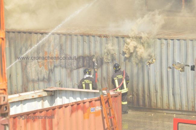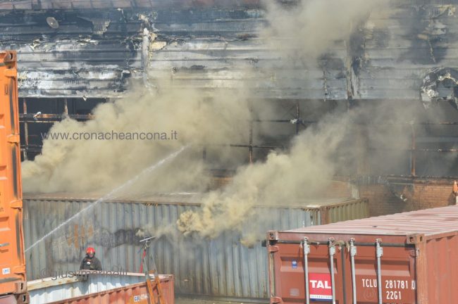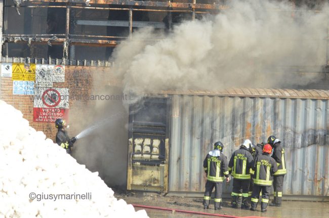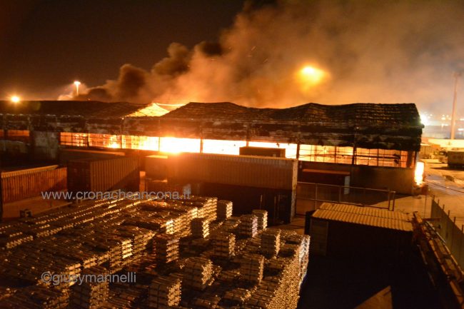 Poco dopo mezzanotte e mezza, l’inferno: fiamme ed esplosioni udibili in gran parte della città. Una colonna di fumo è salita verso il cielo. Densa, nera. Ha coperto tutto il porto. Le sirene spiegate dei vigili del fuoco hanno raggiunto l’area dell’ex Tubimar e hanno iniziato l’opera di spegnimento. E’ durata ore. Alla fine della giornata, saranno cinquanta le unità e trenta i mezzi impiegati del 115, provenienti anche dalle province di Macerata e Pesaro. Nessuna vittima.