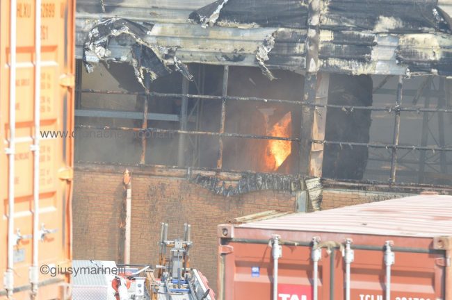 Nella mattina, due riunioni: alle 7,30 quella indetta del Prefetto Antonio D’Acunto. Alle 12 il Coc in Comune dove è stato fatto un primo punto della situazione. Presente anche il presidente dell’Authority Rodolfo Giampieri. Il sindaco: «Il grosso dell’incendio è domato. Permane un focolaio nella parte centrale dell’immobile che continua a produrre ancora fumo». Dall’Autorità portuale è stata data l’indicazione che i materiali andati bruciati sono prevalentemente di origine plastica (poliuretano e gommapiuma).