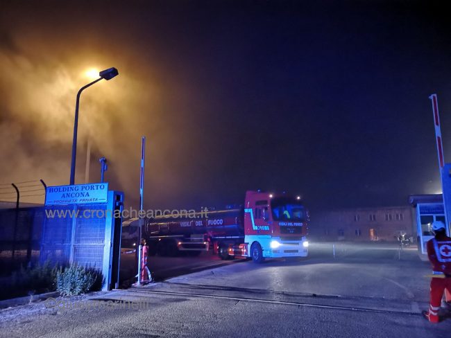 Aggiornamento delle ore 9.15 – Sono in corso i rilievi dei vigili del fuoco e le analisi di Arpam e Asur nell’area interessata dall’incendio e nelle altre zone della città. In attesa dei risultati e delle indicazioni delle autorità sanitarie il Comune di Ancona raccomanda a tutti «di limitare gli spostamenti non necessari e di tenere chiuse le finestre».