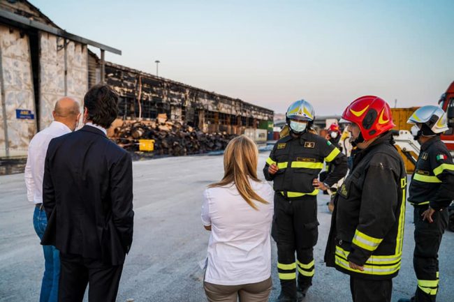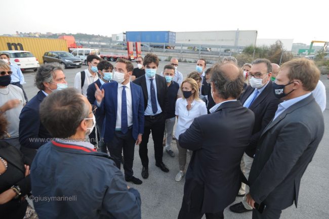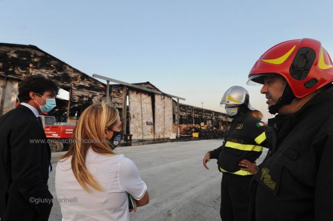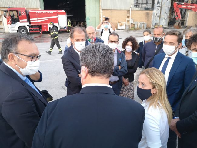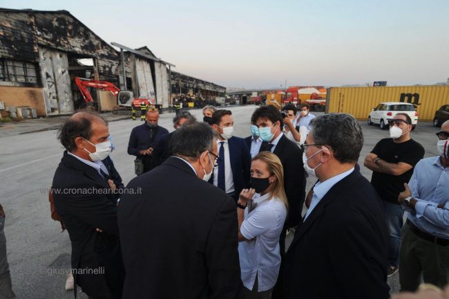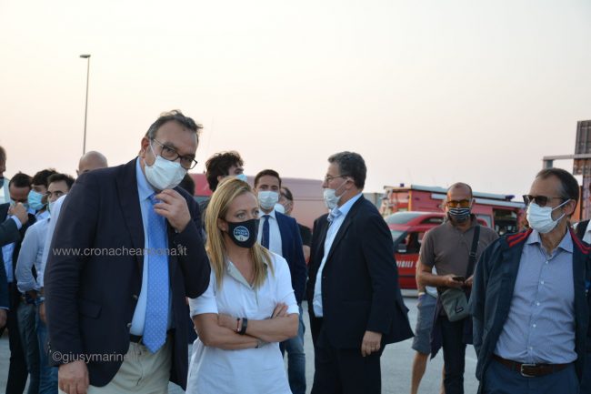 L’incendio ha causato «un danno economico importante per gli operatori del porto. La città ha sofferto parecchio negli ultimi due giorni. Ed è anche per questo che abbiamo scelto di annullare la manifestazione di Fratelli d’Italia a sostegno di Francesco Acquaroli presidente della regione. Non volevamo contribuire a stressare la città  con un evento che avrebbe portato parecchia gente e che avrebbe prodotto traffico». Così la leader di Fratelli d’Italia Giorgia Meloni al termine del sopralluogo all’ex Tubimar, l’area colpita dall’incendio della scorsa notte. La chiusura della campagna elettorale del candidato governatore del centrodestra si sarebbe dovuta tenere alle 21 a piazza Cavour. Il palco era già stato montato. «Abbiamo voluto solidarizzare con Ancona, sospendendo la campagna elettorale e venendo qui al porto per portare la nostra attenzione agli operatori di questa realtà. Tra gli obiettivi che Fratelli d’Italia si dà per la presidenza della Regione Marche c’è lo sviluppo infrastrutturale, un ulteriore sviluppo del porto, l’utilizzo della risorsa del mare e la necessità della regione di essere davvero collegata per poter essere un crocevia». Il ringraziamento ai vigili del fuoco che «lavorano incessantemente in condizioni di estrema precarietà  e difficoltà. Essendo la struttura estremamente pericolante, se non ci si muove con estrema delicatezza, c’è il rischio che possa implodere e cedere». Con lei, Francesco Acquaroli e Carlo Ciccioli. Al sopralluogo ha preso parte anche il presidente dell’Authority Rodolfo Giampieri.