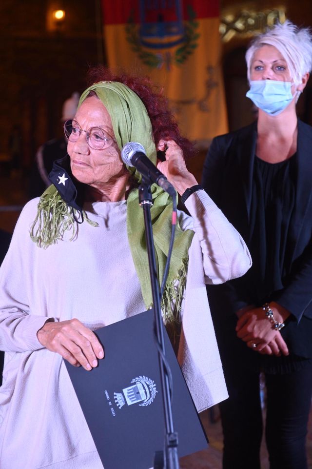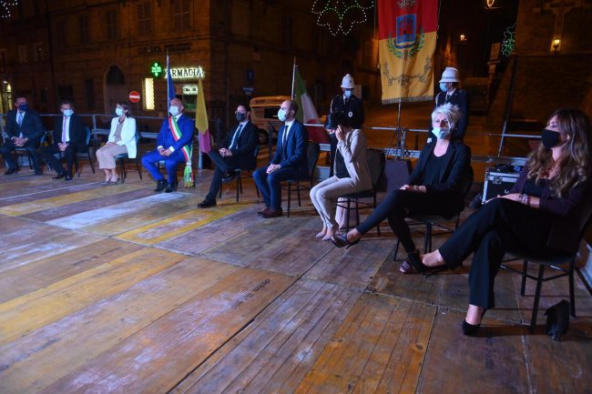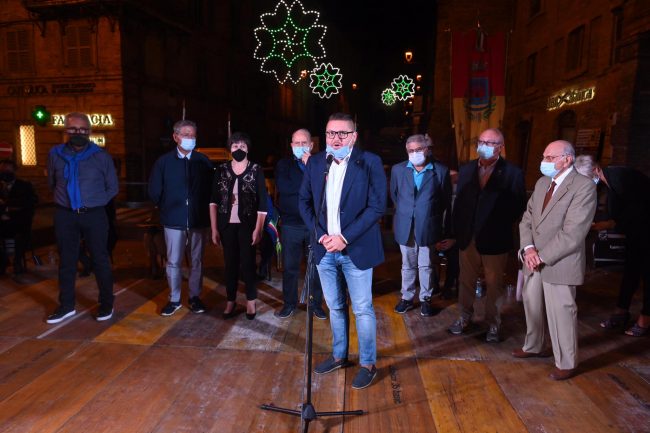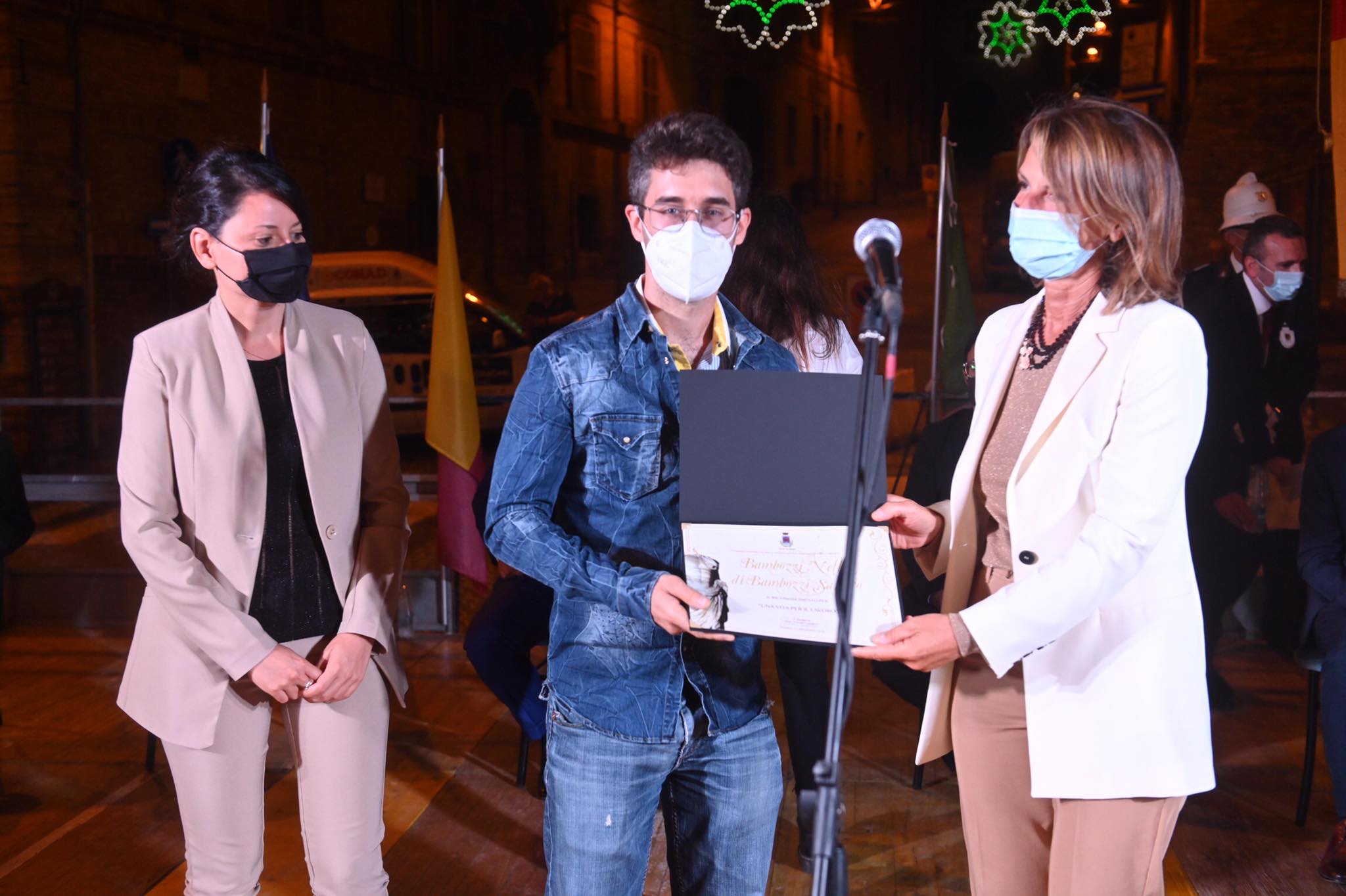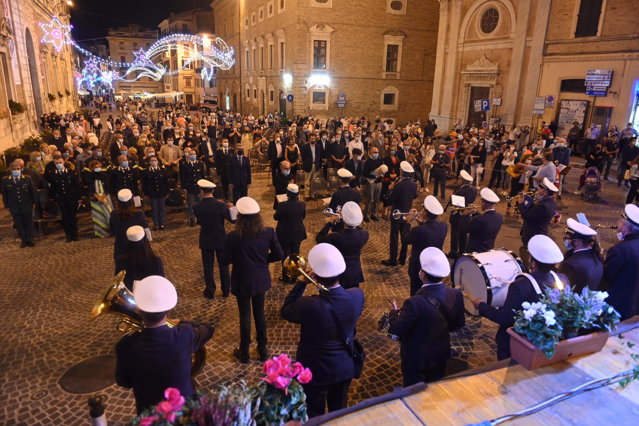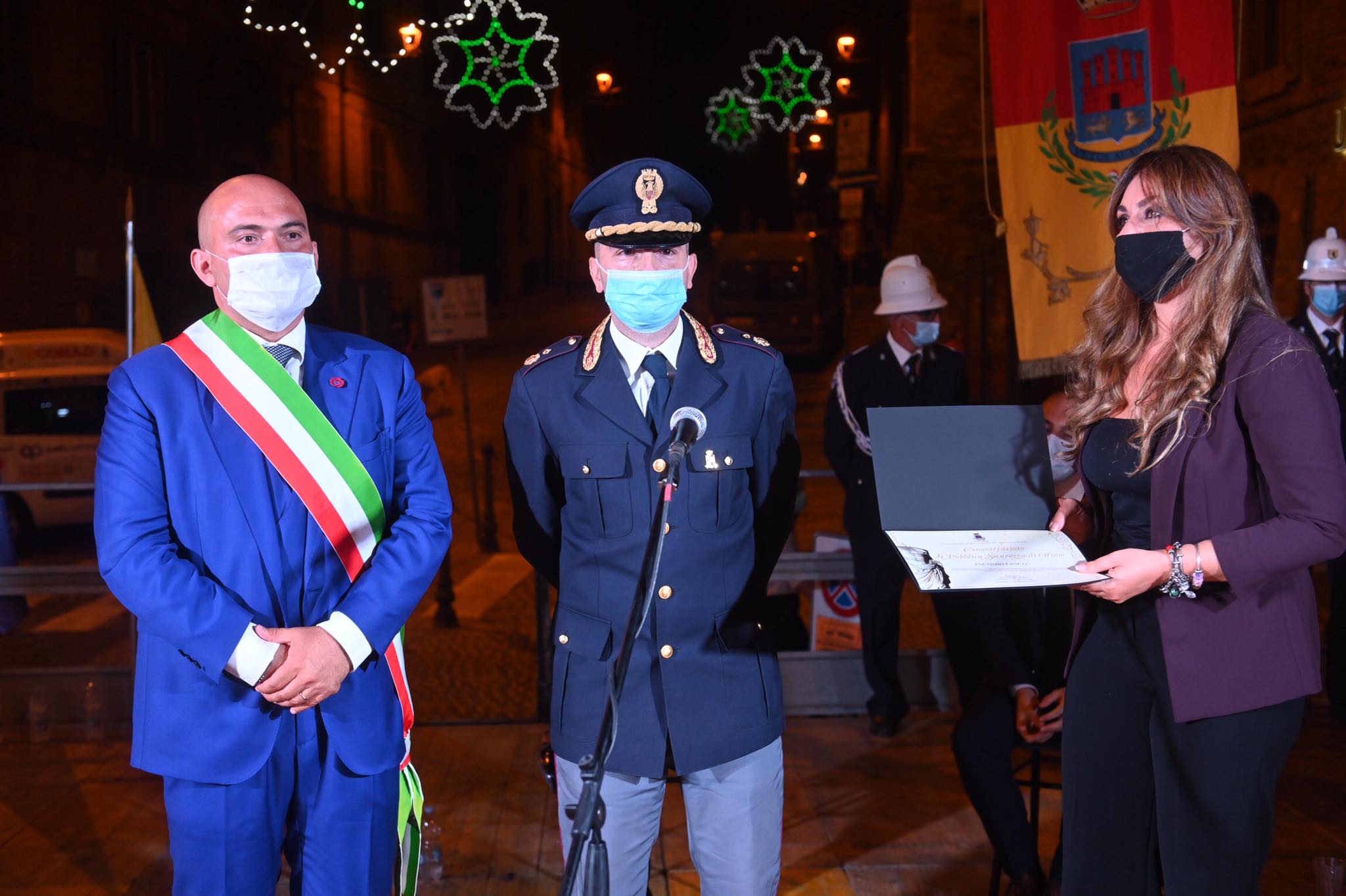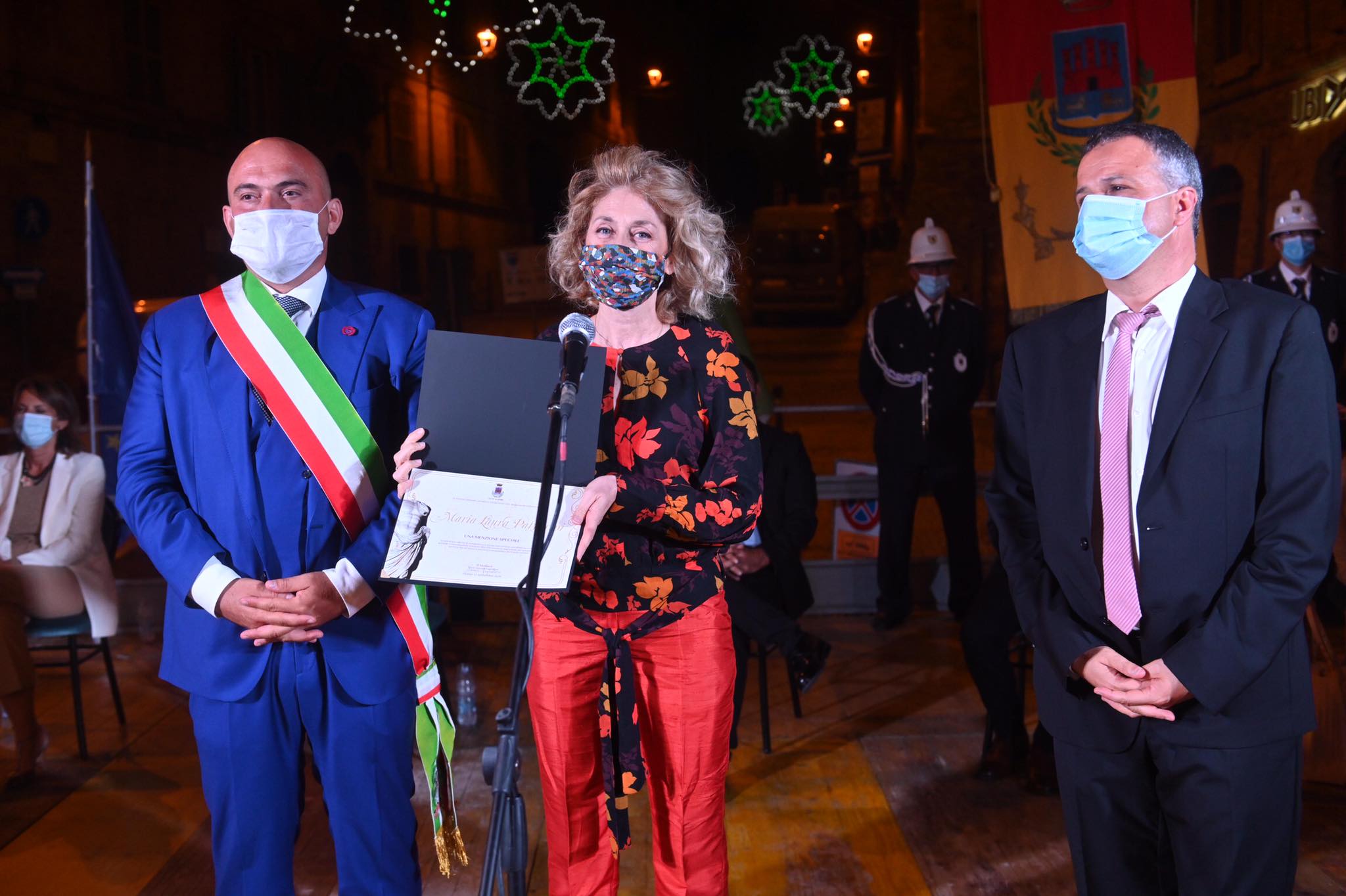 Ieri sera, sul palco di piazza del Comune tra un pubblico in assetto anti Covid, il sindaco Simone Pugnaloni, gli assessori e il presidente del Consiglio hanno consegnato i riconoscimenti ai protagonisti che hanno omaggiato il nome di Osimo (al link l’elenco dei premiati). Tra applausi e ricordi, è scattata la commozione alla lettura della lettera scritta dai familiari di Andrea Rocchi, deceduto a marzo a Cingoli, ai quali è stata consegnata una pergamena alla memoria. Un messaggio d’affetto della compagna del 40enne, letto dall’assessore Michela Glorio.