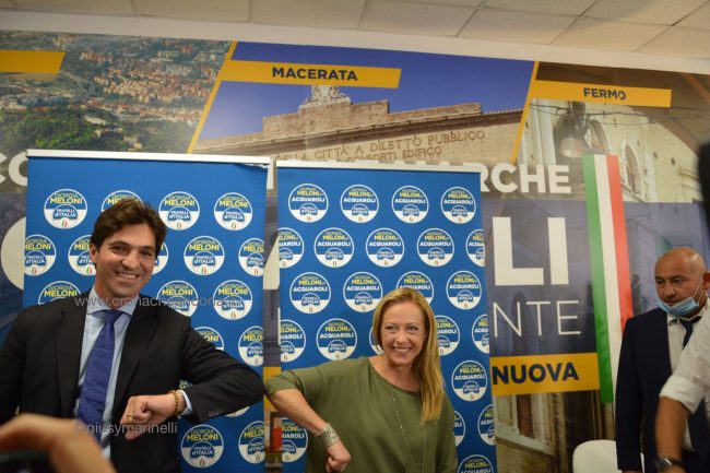 Si è parlato del sostegno alle imprese, di come far crescere un marchio di questa regione capace di portare più turismo e sviluppo. Ha parlato dei problemi concreti di questa regione. E per questo siamo stati ripagati dai cittadini marchigiani che ci hanno dato la loro fiducia. Noi faremo la nostra parte per aiutare Acquaroli, ma è lui il presidente della Regione Marche, non Giorgia Meloni. Passeremo i prossimi 5 anni a mantenere le promesse di questa campagna elettorale». Quindi una stoccata della leader di FdI al M5S, guardando i risultati nazionali delle regionali: «La lista civetta del Pd viaggia verso una stagione di ininfluenza, si ritorna al sano bipolarismo».
