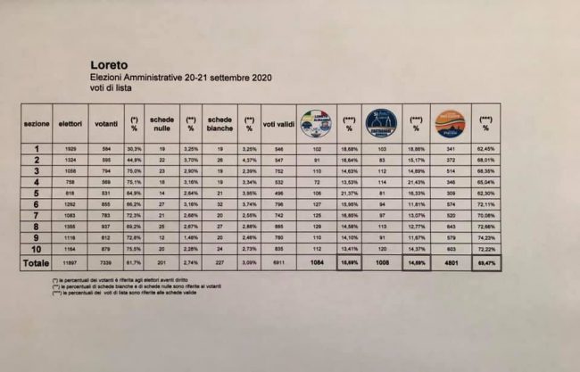 In attesa della convalida degli eletti, alla lista del sindaco vengono assegnati 11 seggi in Consiglio comunale, 3 andranno alla lista di Albanesi e 2 a quella di Castagnani che siederanno entrambi di diritto nell’assemblea cittadina lauretana.