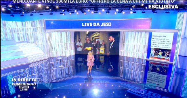 E’ ormai una star, Tiziano, ex medicante-giocoliere al semaforo di Jesi. Oggi pomeriggio la sua storia di rinascita è stata raccontata in diretta da Barbara d’Urso, conduttrice di ‘Pomeriggio Cinque’, trasmissione di Canale5. Ex imprenditore, disoccupato da tre anni e costretto a chiedere qualche moneta con il suo cappellino giallo, il simpatico 60enne jesino ha catturato gli applausi del pubblico in studio nel raccontare la sua sorpresa nell’aver vinto l’ingente somma di denaro. «Il 16 agosto aveva acquistato alla macchinetta il grattino ‘miliardario’ dalla mia amica Katia Memè. – ha rammentato – A casa ho grattato ed è uscito il numero 12. Era notte e quando ho visto il 3 ho capito che la cifra poteva essere 300mila euro. Ma ero così incredulo che non ho visto l’ora che aprisse la banca per consegnarlo e avere rassicurazioni dal cassiere che fosse vera quella vincita». Le sue ultime parole sono state dedicate a Chicco Forti, l’italiano condannato all’ergastolo negli Stati Uniti, che da 20 anni in carcere, si proclama innocente. «Mi ha scritto una mail e vorrei lanciare una appello: chi può lo aiuti» ha chiuso Tiziano prima dei saluti.