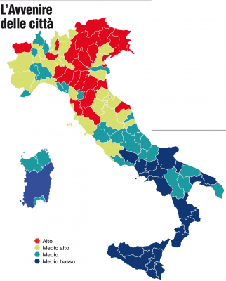 La mappa geografica del Ben Vivere disegnata dalla ricorca del quotidiano Avvenire (foto www.avvenire.it)
