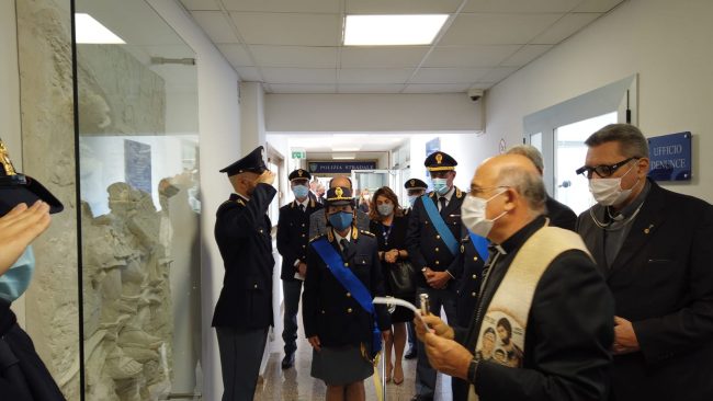 La polizia festeggia il protettore San Michele Arcangelo. La cerimonia odierna si è svolta in due fasi: la prima in questura dove alla presenza del questore Pallini e del prefetto D’Acunto è stato svelato l’altorilievo realizzato dallo scultore Massimo Ippoliti raffigurante San Michele nell’atto di uccidere Lucifero. La scultura è stata benedetta da monsignor Angelo Spina, arcivescovo metropolita di Ancona e Osimo, accompagnato dal cappellano territoriale della polizia di stato Don Antonello Lazzerini. La scultura è stata realizzata grazie al contributo del Rotary Club Ancona, del Rotary Club Ancona Conero e del Rotary Club Ancona 25-35; alla cerimonia di svelamento erano presenti i rispettivi presidenti. Al termine della benedizione, la messa nella chiesa di San Michele Arcangelo officiata dall’arcivescovo Spina. Al termine, sono stati premiati dal prefetto e dal questore due poliziotti: il sostituto commissario coordinatore Dante Ciarafani e l’ispettore superiore Maurizio Nazzarelli, entrambi in servizio alla Squadra Mobile. La motivazione: «Evidenziando spiccate qualità professionali, coordinavano l’indagine di polizia giudiziaria che consentiva di disarticolare una organizzazione criminale composta da cittadini pakistani finalizzata al trasposto di soggetti clandestini con l’aggravante della transnazionalità».