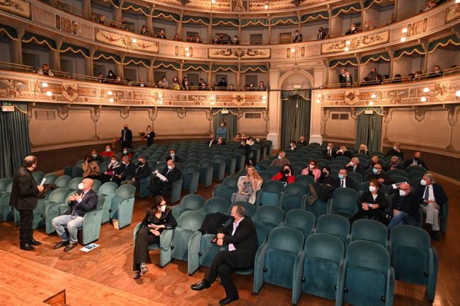 Maria Grazia Cucinotta, madrina ieri sera ad Osimo, all’anteprima nazionale del film ‘Il gatto & la luna’, di cui cui è protagonista. «E’ stato un grande orgoglio aver ospitato l’anteprima della pellicola al teatro “La Nuova Fenice”. – ha commentato il sindaco Simone Pugnaloni che ha fatto gli onori di casa – Ringrazio gli amici Enzo Storico, attore e Roberto Lippolis, regista. Gran parte del film è prodotto dalla loro societa’ Ventitre srl è stato girato ad Osimo. Le immagini della nostra citta’ faranno il giro del mondo promuovendola nostra citta’. Maria Grazia Cucinotta ci ha omaggiato della sua presenza assieme al grande maestro del cinema Enzo Garinei anche lui all’eta’ di 94 anni attore nel film proprio con lei. Una produzione che ha messo insieme privati ed istituzioni in un gioco di squadra davvero eccezionale. Grazie a tutti, in particolar modo alla Regione Marche che ha creduto nel progetto. Un saluto particolare ed un augurio di buon lavoro al neo assessore regionale alla Cultura Giorgia Latini che ci ha onorati della sua presenza e del suo saluto alla città». La serata, su invito ristretto, si è svolta nel rispetto delle misure anti-Covid.