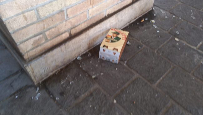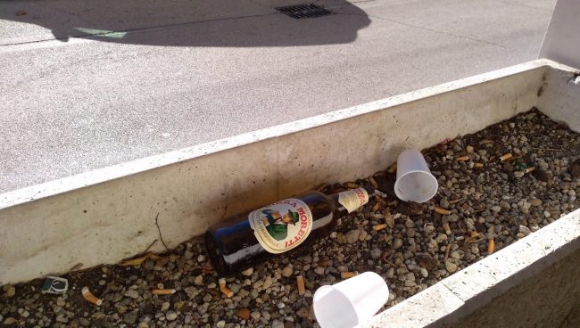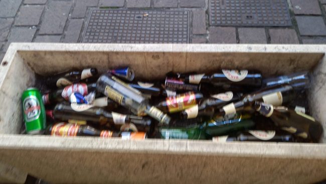 Bottiglie gettate nelle fioriere di corso Carlo Alberto