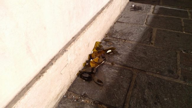 Bottiglie spaccate per divertimento o in seguito ad una rissa, sangue a terra e vuoti di alcolici scolati per poi essere abbandonati nelle fioriere. Via Giordano Bruno e corso Carlo Alberto, nel quartiere del Piano, non si salvano dagli ubriachi che di pomeriggio e di notte creano un caos continuo, prendendo come pianta stabile soprattutto i porticati e la piazzetta dell’ex Cinci.