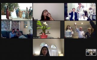 I genitori, i parenti e gli amici connessi su zoom per assistere la matrimonio di Alessandra e Kevin