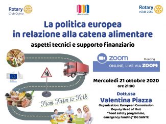 Il Rotary Club di Osimo continua a rappresentare un punto di riferimento per il territorio anche in tempo di emergenza pandemica, attraverso una serie di iniziative che lo pongono attivamente al servizio della comunità, come accaduto anche durante la quarantena della scorsa primavera. Stasera, 21 ottobre, il club promuove, infatti, il webinar dal titolo “La politica europea in relazione alla catena alimentare. Aspetti tecnici e supporto finanziario”, un’occasione per approfondire il rapporto economico e normativo tra le istituzioni di Bruxelles ed il mondo alimentare, investito da significative trasformazioni, anche sotto l’aspetto della sicurezza e della sostenibilità. Si tratta, inoltre, di un’utile opportunità per comprendere quali siano le politiche del settore in chiave futura, realizzabili attraverso gli specifici piani comunitari. In collegamento dal Belgio un ospite di prestigio, Valentina Piazza,vice capo di Unità presso la Dg Sante della Commissione Europea, che illustrerà le linee generali del Programma Comunitario From Farm To Fork, parte importante dell’European Green Deal e le risorse finanziarie messe in campo dalla Comunità Europea nel Quadro Finanziario Multiannuale 2021-2027 per realizzarlo. Per poter assistere all’incontro sarà sufficiente collegarsi all’indirizzo, attraverso la piattaforma Zoom, https://us02web.zoom.us/j/81503574054 oppure id 81503574054.
