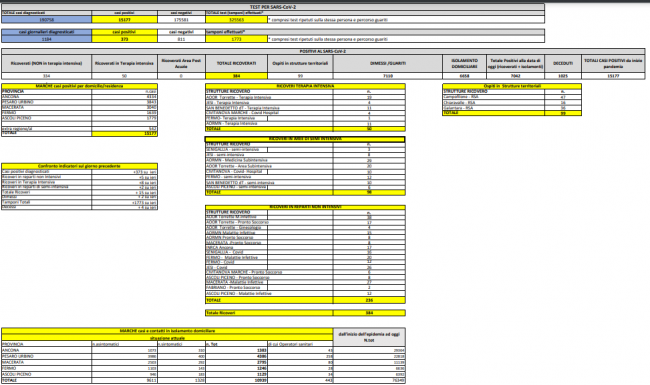 AGGIORNAMENTO DELLE 17 – Sono 15 i nuovi ricoveri nelle Marche, crescono anche i pazienti ricoverati nei reparti intensivi. E’ quanto comunicato dal servizio Sanità nel secondo bollettino di giornata. Le persone ricoverate negli ospedali della regione hanno raggiunto quota 384, di cui 50 nelle terapie intensive (+ 8 su ieri) e 98 nelle semi-intensive (+2 su ieri). Al Covid center di Civitanova ad oggi ci sono quattro pazienti in terapia intensiva e 10 in semi. Gli altri ricoveri in terapia intensiva sono ad Ancona (19), San Benedetto del Tronto e Marche Nord (11 ciascuna), Jesi (4) e Fermo (1). Per la semintensiva sugli scudi Marche Nord (29), Ancona (20), Fermo (12), San Benedetto (10); sub intensiva anche a Jesi, (8), Ascoli Piceno (6) e Senigallia (3). L’unico dato in diminuzione è quello degli isolamenti domiciliari: -420 su ieri, per un totale di 10.939 in tutta la regione. Ad oggi il totale di positivi nelle Marche è 7.042 tra ricoveri e isolamenti domiciliari.