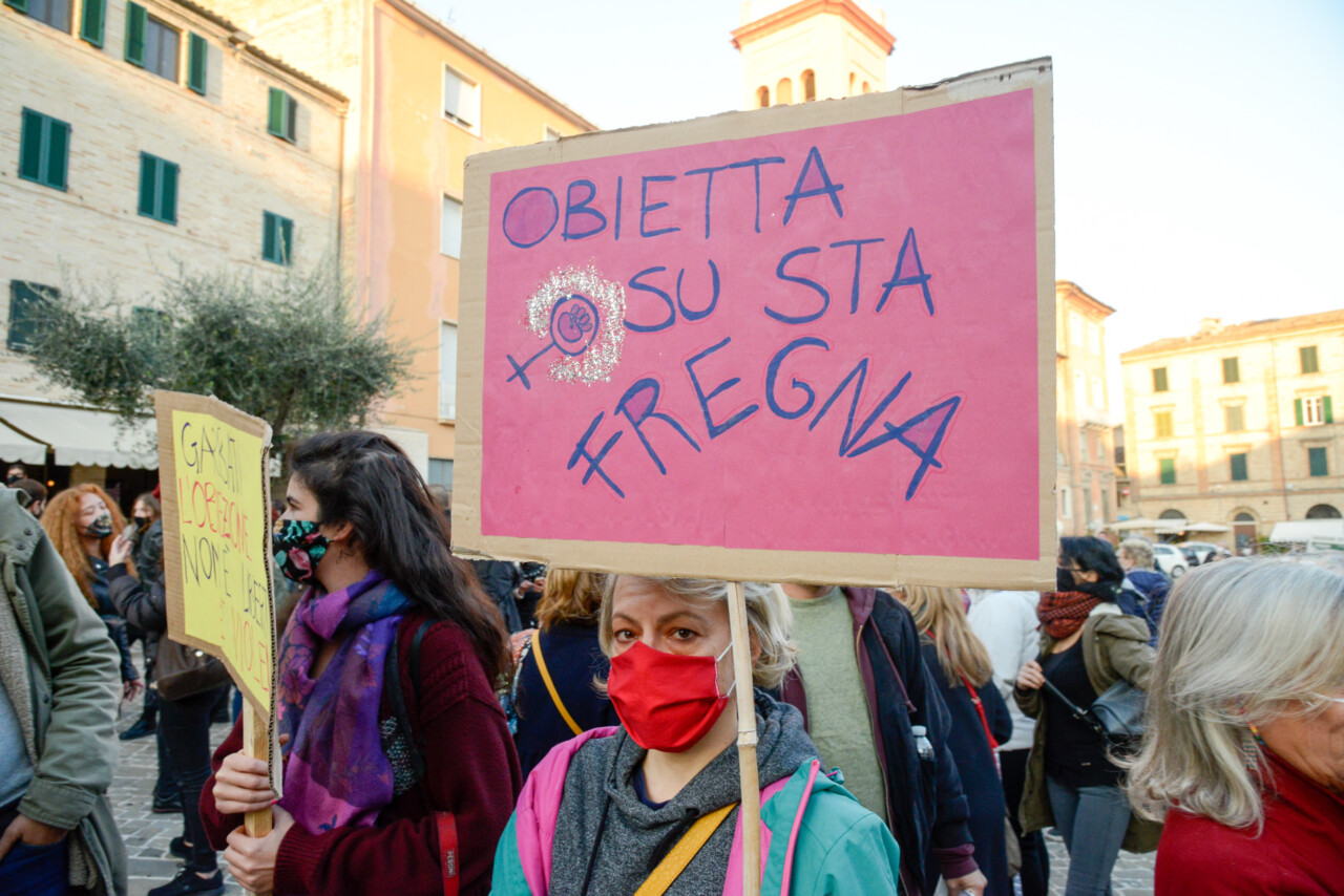 Accanto all’attivismo anche esponenti dell’Osservatorio di genere, Claudia Santoni che ribadisce come «le parole pronunciate dai ministri del culto non rappresentano l’attuale situazione della donna. Abbandoniamo questi luoghi comuni». Polemiche che hanno toccato la città tutta, compresa l’Università di Macerata rimasta allibita dalle dichiarazioni della professoressa Clara Ferranti mostratasi totalmente favorevole all’omelia del parroco. «Dal Rettore ci aspettavamo una presa di posizione più marcata, ma capiamo come in rappresentanza di diverse categorie non si sia sbilanciato troppo. Critichiamo fortemente, invece -ha detto Francesca Camilla Bollettini (rappresentante di Officina Universitaria) – l’intervento odierno di Adinolfi. Ha giudicato il Rettore, accusandolo di una limitata libertà di espressione, fatto alquanto inesistente». È alla stessa Ferranti che, delle attiviste, hanno dedicato una preghiera, piuttosto rivisitata. Le Marche non erano sole. Una risonanza a livello nazionale, che, in collegamento telefonico ha portato anche la voce di “compagne e compagni” sardi e veneti. Presenti al corteo anche i primi a segnalare la gravità dell’omelia, i rappresentanti di Sinistra Italiana Macerata e con loro anche i consiglieri Pd, Ninfa Contigiani e Andrea Perticarari.