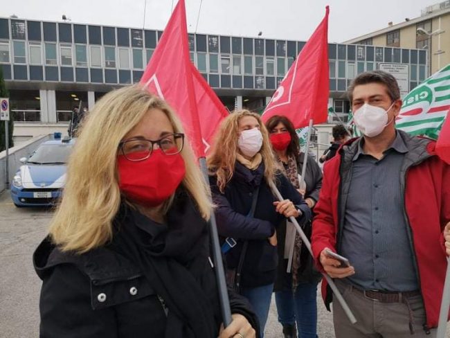 Poi c’è il capitolo assunzioni perché da troppo tempo il sistema pubblico paga la riduzione del costo del personale. Questa debolezza, oggi con la pandemia, è diventata ancora più evidente». Per Stefania Ragnetti, segretaria Fp Cgil Ancona, «bisogna passare dai proclami ai fatti. La politica negli anni ha scelto di operare tagli lineari sulla sanità: ora siamo in emergenza, ma la carenza di personale era già evidente. Aspettiamo i concorsi, bloccati da tempo, il turn over, le stabilizzazioni. Servono più investimenti in generale e bisogna fare in fretta. Per l’impegno che c’è stato, pesante anche da un punto di vista psicologico, le premialità non sono all’altezza. L’accordo è importante ma non sufficiente. Prima si parlava di eroi, ora non c’è più quella solidarietà». Al presidio di infermieri, oss ed operatori tecnici ha fatto seguito, a stretto giro, quello dei dipendenti Multiservizi, la maggior parte dei quali impegnati nelle pulizie.