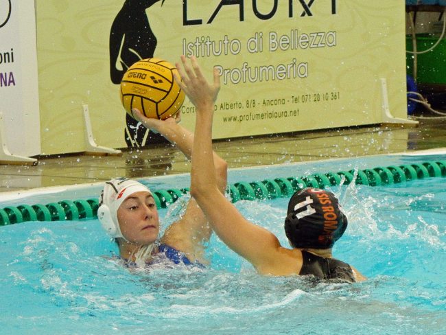 Gli errori condannano la Storm Vela Ancona alla seconda sconfitta: opposta alla Lifebrain Sis Roma cede con il punteggio finale di 9-16. Buona prova, nel complesso, quella offerta dalle anconetane nel loro ritorno alla piscina del Passetto di Ancona dopo un anno: una Sis Roma farcita di giocatrici della nazionale, pur con alcune illustri assenze, come quelle Galardi e Tabani e l’italobrasiliana Chiappini, si rivela avversario troppo forte per le doriche che giocano una partita a inseguire, commettendo diversi errori su cui le romane si dimostrano implacabili. E dire che la Storm Vela parte bene, due volte in vantaggio nel primo tempo, con Ivanova e Altamura (2-1), prima di subire il break della Sis Roma (0-4) che chiude al primo intervallo sul 2-5 con una Avegno in grande forma anche al tiro. Le romane allungano a inizio secondo tempo con Storai, quindi il controbreak delle anconetane, che dal 2-6 si riportano sul 5-6 con tre reti realizzate, in successione, dalla pescarese Colletta, dalla russa Ivanova e su rigore da Quattrini. La Vela Ancona forse si illude, sicuramente i tre gol scuotono le romane che tornano a spingere sull’acceleratore: con Picozzi vanno sul 5-7 e chiudono al cambio di campo con due lunghezze di vantaggio, quindi proseguono l’allungo nel terzo tempo piazzando un altro 5-2 in proprio favore che le porta all’ultimo intervallo sul 7-12. Nell’ultimo tempo non cambia la musica: la Vela Ancona, stanca, prova a fare quello che può, la Sis Roma colpisce con lucidità a ogni disattenzione anconetana. Migliori marcatrici delle due squadre: Picozzi per parte Sis Roma con cinque reti, Ivanova per la Vela Ancona con tre. Nella Vela Ancona da segnalare il debutto di Anastasia Riccio, classe 2003, che bagna l’esordio con una prova positiva condita da un gol. Prossima giornata di campionato il 5 dicembre, con la Vela Ancona che ospiterà al Passetto la Rari Nantes Florentia.