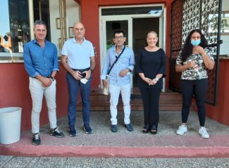 Il sindaco Bacci (secondo da sinistra) con il ristoratore Alì Mustafa al centro e la delegazione di amministratori comunali