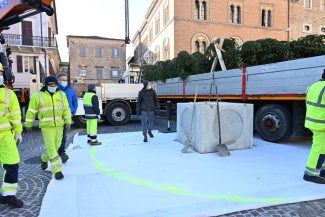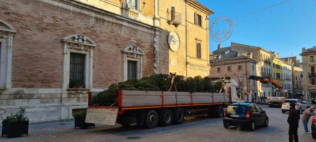 E’ arrivato stamattina in piazza Boccolino l’abete donato da Cortina d’Ampezzo, nel rispetto del gemellaggio culturale che lega le due città. Un albero di Natale davvero alto quest’anno che dopo l’operazione-addobbi, completerà la scenografia delle luminarie montate e già accese nella serata di sabato scorso. La tradizionale cerimonia di accensione dell’albero, quest’anno più che mai simbolo di speranza, è invece fissata per sabato pomeriggio. A causa dell’emergenza sanitaria Osimo, come tante altre città, ha pressoché azzerato il cartellone degli eventi natalizi, mercatini compresi,  ma potrebbe lasciare il campo libero agli zampognari ed ad altri artisti itineranti per allietare lo shopping natalizio creando un’atmosfera di festa.
