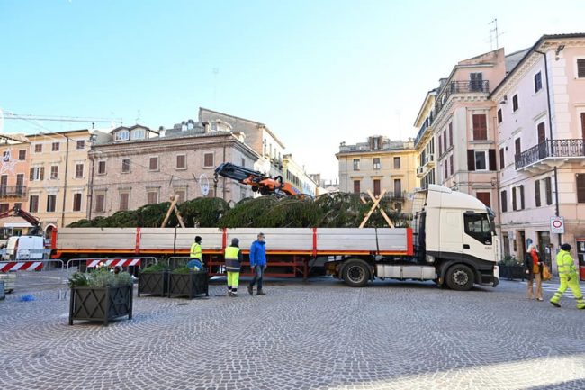 FESTE - L'albero è arrivato questa mattina in piazza Boccolino dove sarà allestito. La cerimonia di accensione prevista per sabato pomeriggio