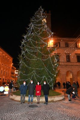 Alle 18 in punto di oggi pomeriggio, con una breve cerimonia trasmetta da piazza Boccolino in diretta sul canale Fb del Comune, il sindaco Simone Pugnaloni ha ufficialmente dato il là alle festività natalizie . «Il 2020 è stato un anno particolare – ha ricordato il primo cittadino di Osimo – e questo sarà un Natale sobrio ma ricco di luci. L’augurio è che tutte le nostre famiglie possano uscire quanto prima da questa pandemia. Domani le Marche torneranno zona gialla, il mio invito rivolto a tutti è quello di venire ad acquistare i regali nei negozi della nostra città a sostegno dell’economia del territorio».