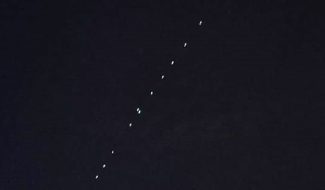 Si tratta infatti di nuova batteria di satelliti del progetto Space X satellite Starlink, finanziato dal multimiliardario Elon Musk che è intenzionato a rendere disponibile internet a livello globale. Fino ad oggi sono stati lanciati nello spazio più di 700 mini satelliti dei 1.440 previsti dal piano. Strumentazioni che stanno creando una sorta di ‘costellazione’ appena sopra l’atmosfera che a giudizio degli astronomi rischia di disturbare le osservazioni dei corpi celesti con i telescopi e di fare ‘foto-bombing’ sulle stesse immagini astronomiche. L’istantanea del passaggio dei satelliti sopra Osimo è stata scattata da Francesco Toccaceli.