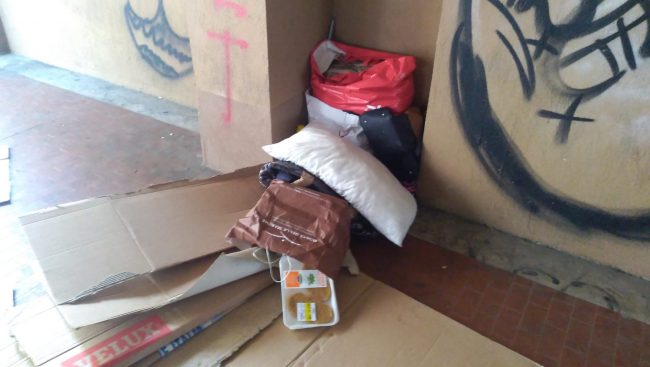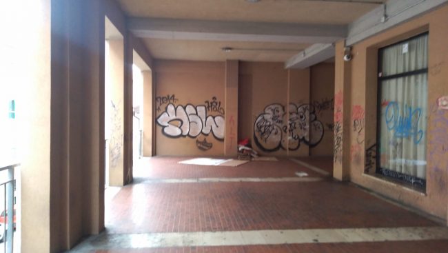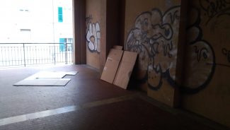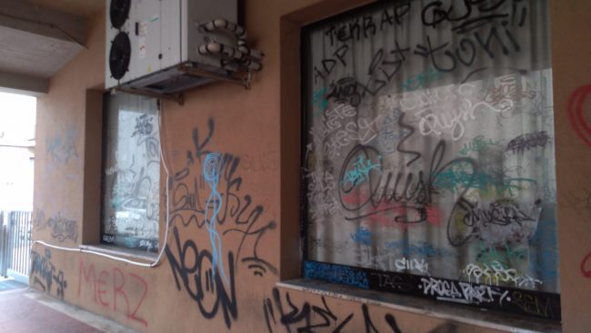 Il passaggio «non si è capito se sia privato ad uso pubblico oppure di proprietà del Comune – continuano – ma rimane il fatto che avanti così non si può andare. I cartoni, usati poi come giacigli, sono a volte appoggiati al muro mentre altre rimangono a terra e volano via con il vento». La presenza di persone che qui vi hanno trovato una sorta di rifugio è evidente. Qui si trovano borse e borselli al cui interno probabilmente è contenuto qualcosa. E, ancora, cuscini e coperte ma anche cibo. «Di giorno – continuano – c’è chi si raggruppa con altre persone e beve alcolici fino a notte. Non hanno timore nemmeno delle telecamere che sono presenti e installate sui muri. I muri poi – commentano – sono pieni zeppi di scritte fatte con le bombolette spray e nemmeno le finestre sono state risparmiate dalla vernice. E’ una situazione di degrado che ha superato qualsiasi limite soprattutto perché ogni giorno che passa, è sempre peggio».