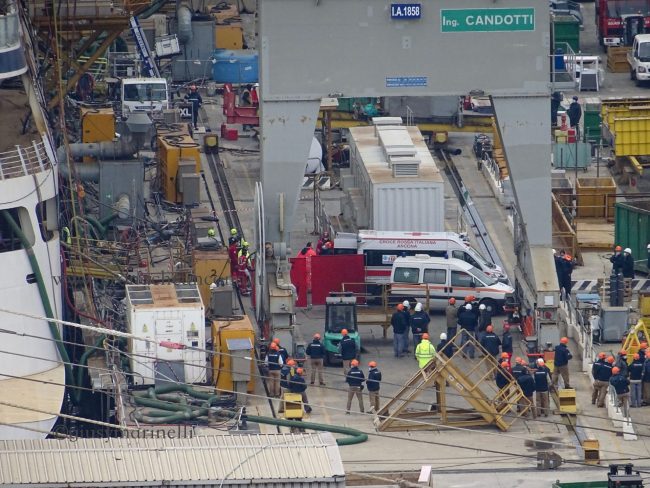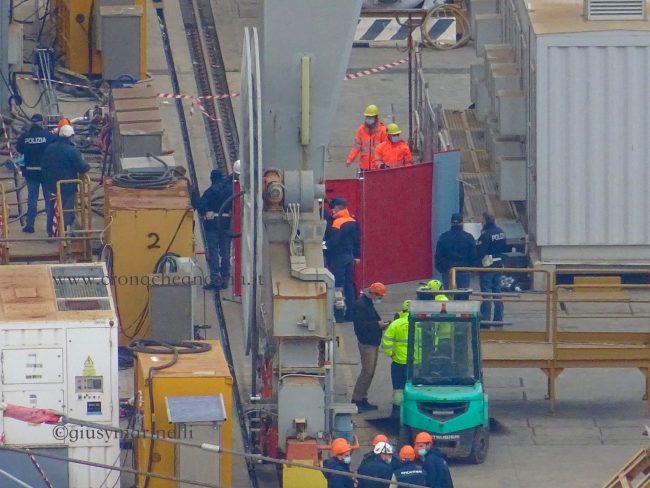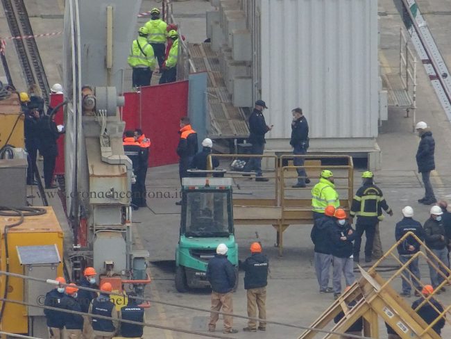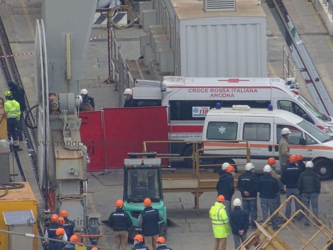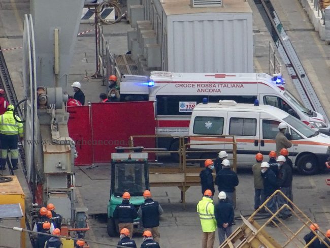 E’ stato visto scavalcare il parapetto del ponte numero 7 della nave Viking, in costruzione alla Fincantieri di Ancona, e poi finire di sotto, sulla banchina, dopo aver compiuto un volo di circa 20 metri nel vuoto. La tragedia è avvenuta poco dopo mezzogiorno, sconvolgendo l’area del cantiere navale. A perdere la vita, un 43enne (G.P. le sue iniziali). Viveva a Falconara con la famiglia. Per oltre mezz’ora si è cercato di rianimarlo con un disperato massaggio cardiaco effettuato dal personale della Croce Rossa e dell’automedica del 118, intervenuti sul posto a seguito della chiamata da parte dei colleghi dell’operaio.