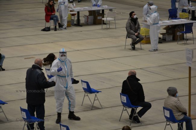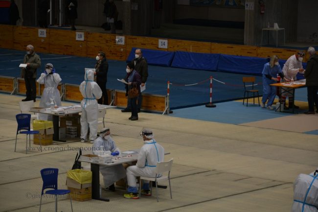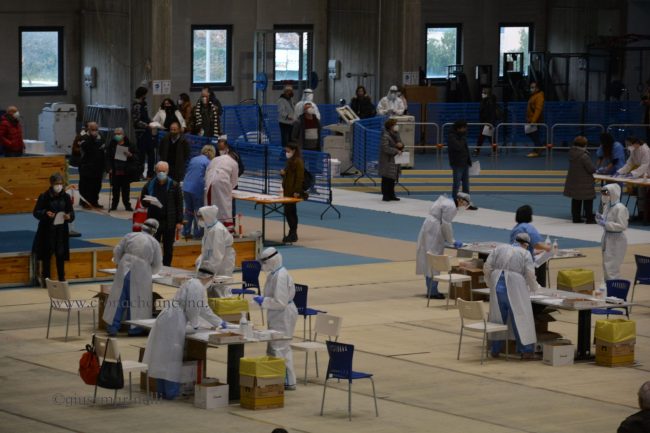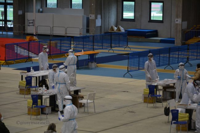 Dai giovani fino agli anziani. Allo screening di massa iniziato questa mattina al Palaindoor delle Palombare hanno risposto i cittadini di ogni fascia di età. C’è chi è arrivato in auto o in moto, chi si è fatto accompagnare da un parente e chi ha scelto di prendere il bus navetta messo a disposizione dal Comune. Alle 8.30, si è aperta la porta di ingresso e, con precisione svizzera, sono iniziate ad entrare le prime 5 persone poi, man mano, tutte le altre. In totale sono stati testati 1.555 tamponi: sei quelli positivi