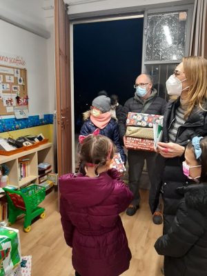 Le consegne delle scatole con i doni. A tutti i partecipanti è stato consegnato un biglietto con le parole di Papa Francesco tratte dall’Enciclica ‘Fratelli Tutti’