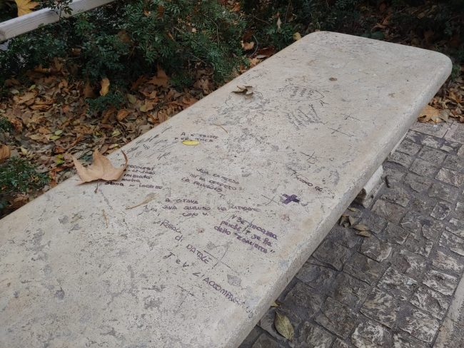Panchine e arredi urbani imbrattati: