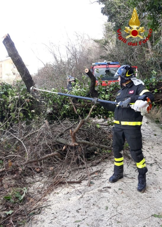 I VIGILI del fuoco sono intervenuti a Osimo per rimuovere le piante sullo stradone e alla pista ciclabile di Campocavallo, a Polverigi per mettere in sicurezza un palo caduto sul muro di un palazzo